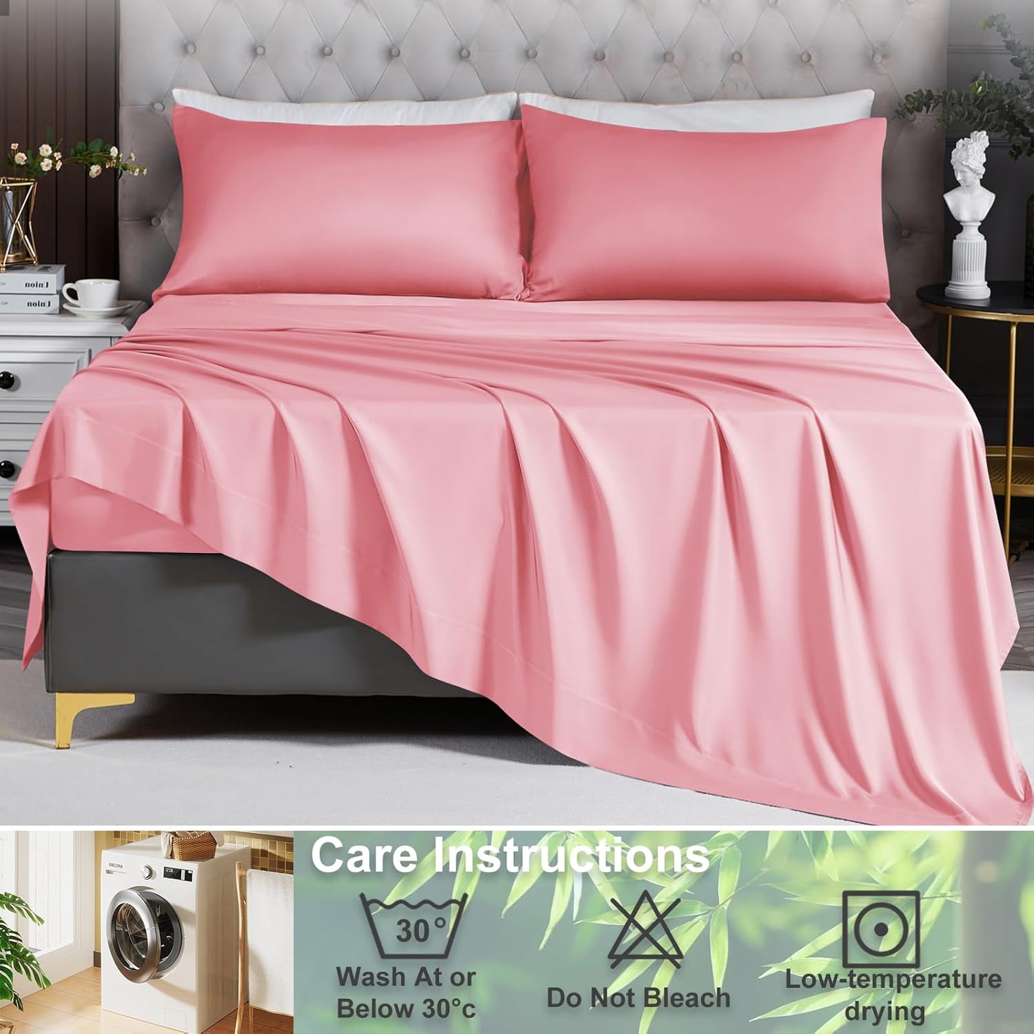 100% Viscose Derived from Bamboo Cooling Sheet SetPackage Included: 2 Pillowcases(twin size only 1), 1 Fitted Sheet, 1 Top Sheet