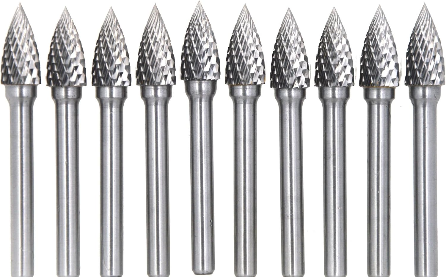 1. Premium Material: Crafted from tungsten steel, offering exceptional micro-hardness and abrasion resistance for long-lasting durability. 2. Superior Toughness: Engineered to withstand high-impact tasks without chipping or breaking, ideal for demanding industrial use. 3. Versatile Design: Compatible with most rotary tools, ensuring seamless integration into your workflow. 4. Applications:Perfect for precision tasks across industries, including: Machinery, aviation, automotive, shipbuilding,and artistic engraving. 5. Efficiency: Reduces downtime with extended lifespan and consistent performance. 6. Precision: Sharp cutting edges enable clean, accurate finishes in intricate projects. 7.1 Double groove: The two blade grinding head is suitable for softer materials such as copper, aluminum, iron stone, wood, plastic, etc. The two blade polishing head has fast chip removal and is not easy to block the patterns during polishing and carving 7.2 Single groove: The single blade grinding head is suitable for harder materials such as iron and steel. The pattern of a single groove determines that using softer objects is not ideal because during the cutting process of a single groove knife, waste easily blocks the groove, causing the depth of the groove texture to change and the cutting ability to decrease 8. The recommended speed is 6000-50000r/min, and the processing effect is poor when it is below 10000r/min 9. When using, clamp the cutting tool firmly and use reverse milling as the cutting method to avoid reciprocating cutting