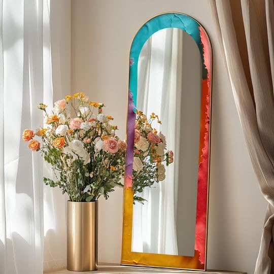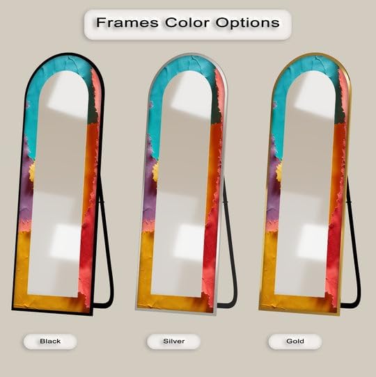 Arch Shaped Floor Mirror with Metal Frame – Gold, Black, or Silver | Leaning, Standing, or Wall-Mounted Full Body Mirror Add artistic charm and functional elegance to your space with our Arch Full Length Mirror, designed to make a bold statement in any room. Whether styled in a bedroom, hallway, or living room, this arched floor mirror enhances your interior with timeless beauty. The edges of the mirror consist of pictures in the colors of your choice printed on tempered glass using the UV printing technique. The mirror itself is mounted on top of this printed tempered glass, giving it a vibrant, durable, and luxurious finish that stands out in any setting. Measurements; TOTAL SIZE (Uv Printed Tempered Glass + Mirror) : 23,5’’W x 67’’ H ONLY MIRROR SIZE : 17’’W x 60,5’’ H Choose from three premium frame finishes—Arch gold mirror, sleek black, or arch floor mirror silver—and enjoy flexible use as a Standing Floor Mirror, Arched Wall Mirror, or casually leaned for a designer look. This is more than a Full Body Floor Mirror with Stand—it’s a piece of functional art. Multiple Placement Methods, This arched floor mirror comes with a U-shaped bracket, which you can freely place in the living room or bedroom. For your convenience in hanging on the wall, special hangers are designed on the back of the mirror.Our premium mirrors are crafted by gluing 4mm tempered glass to a 4mm mirror, combining durability and style. The tempered glass features UV printing for a glossy, vibrant look, while both the glass and mirror have smooth, grinded edges for safety. The hidden metal hanger ensures a sleek, ready-to-hang design, making it an elegant and functional addition to any room.