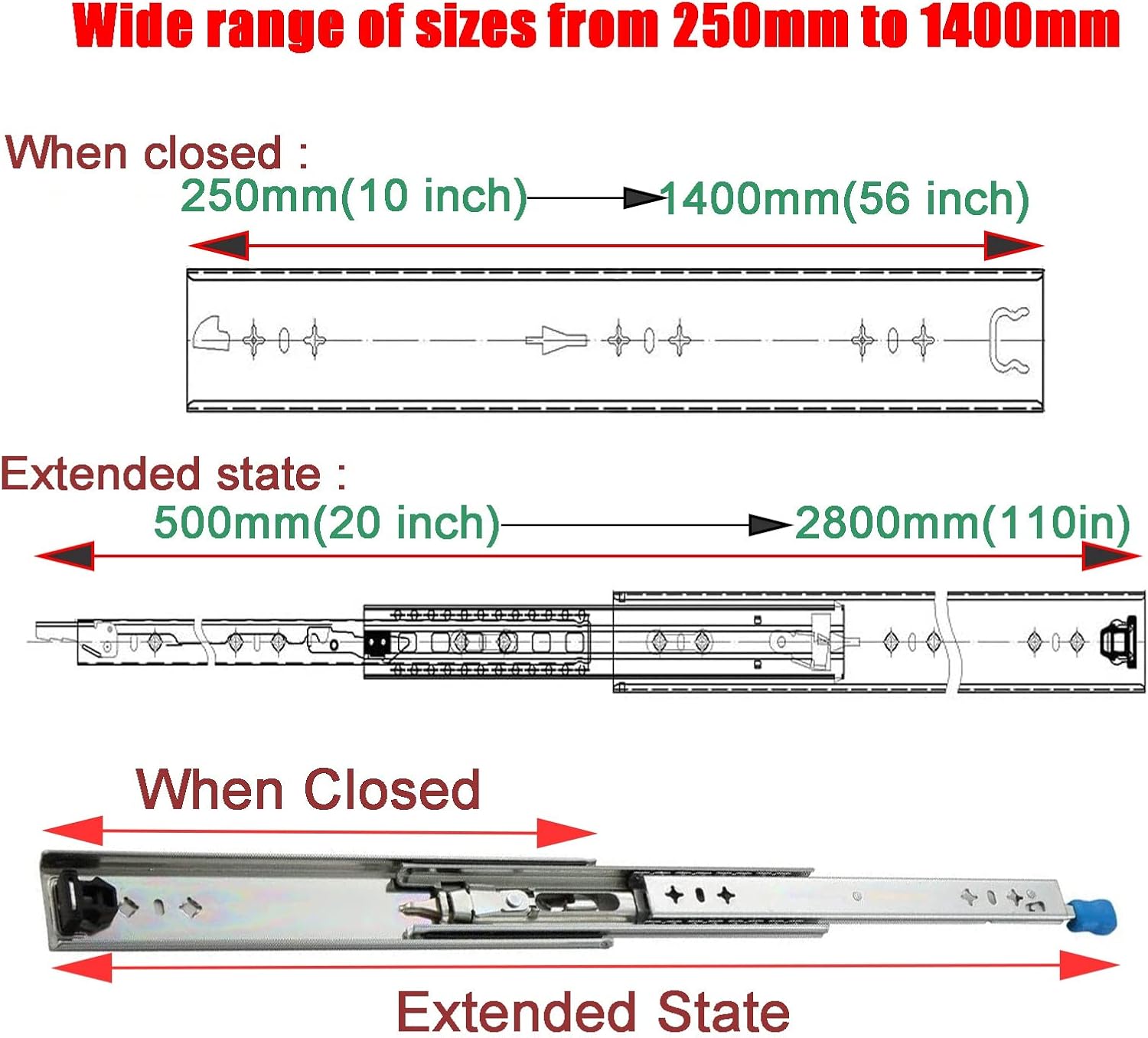 Upgrade your storage solutions with our Sturdy and Thick Metal Sliding Device featuring a reliable locking function. Designed for both everyday use and heavy-duty industrial applications, this sliding device is perfect for a variety of settings, including kitchens, workshops, and warehouses. Crafted from high-quality cold-rolled steel, our sliding rails are durable and built to last, ensuring that your drawers and cabinet shelves operate smoothly. With a sleek silver finish, they not only perform well but also enhance the aesthetics of your space. Measuring 53mm in width and 19mm in thickness, these heavy-duty slide rails come in adjustable sizes ranging from 250mm to 1500mm, accommodating different drawer depths and widths. Capable of supporting a load capacity of up to 120 kg (265 lb), they offer the strength you need for both light and heavy items. Ideal for organizing tools, kitchen supplies, and office materials, our sliding device transforms cluttered spaces into organized areas with ease. Whether you're renovating your home or optimizing your workshop, this versatile product is a reliable choice. Please note that screws are not included with the package. Experience the perfect blend of functionality and strength with our Metal Sliding Device, a must-have for anyone looking to maximize their storage efficiency.