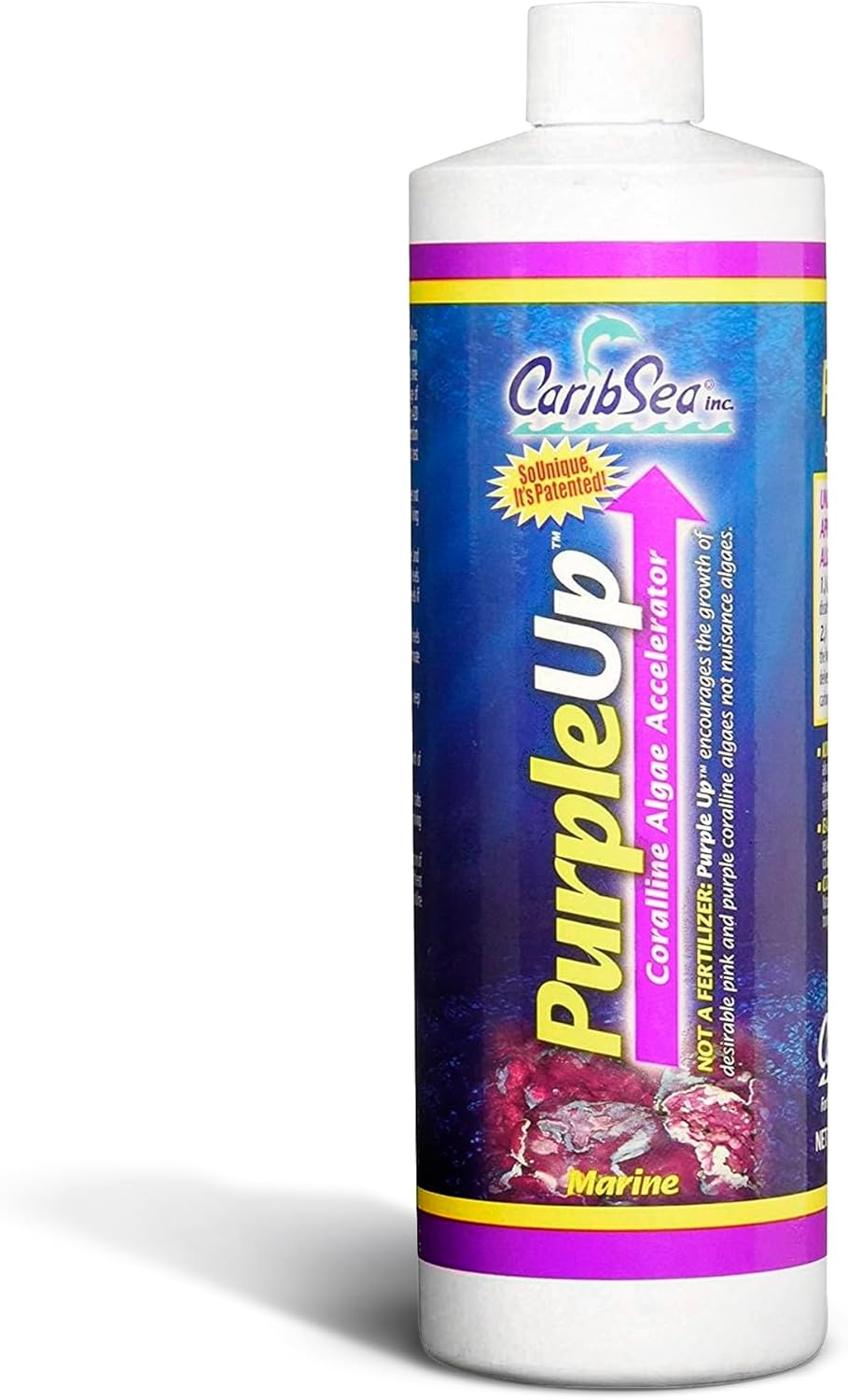 Purple Up from CaribSea is a patented unique formulation to speed up the growth of desirable pink and purple coralline algae in the marine aquarium. Since it is not a fertiliser it will not promote the growth of unwanted nuisance algae.