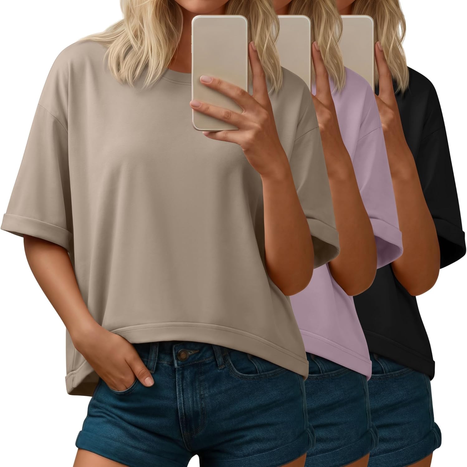Features: The women's oversize shirts are practical and stylish. Please refer to the detailed size chart to choose the size that fits you for a comfortable and flattering fit. To keep these women's cropped t shirts in their color and shape, it is advised to handwash cold, wash separately, do not bleach. This maintains the clothing's texture, fit, and color vibrancy for longer. Specifications: Material: 60% Polyester, 35% Cotton, 5% Spandex Package includes: 3 x Women's oversize cropped tops Notes: Manual measurement, please allow slight errors on size. The color may exist a slight difference due to different screen displays