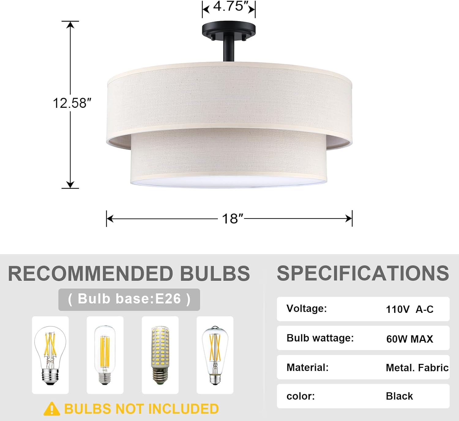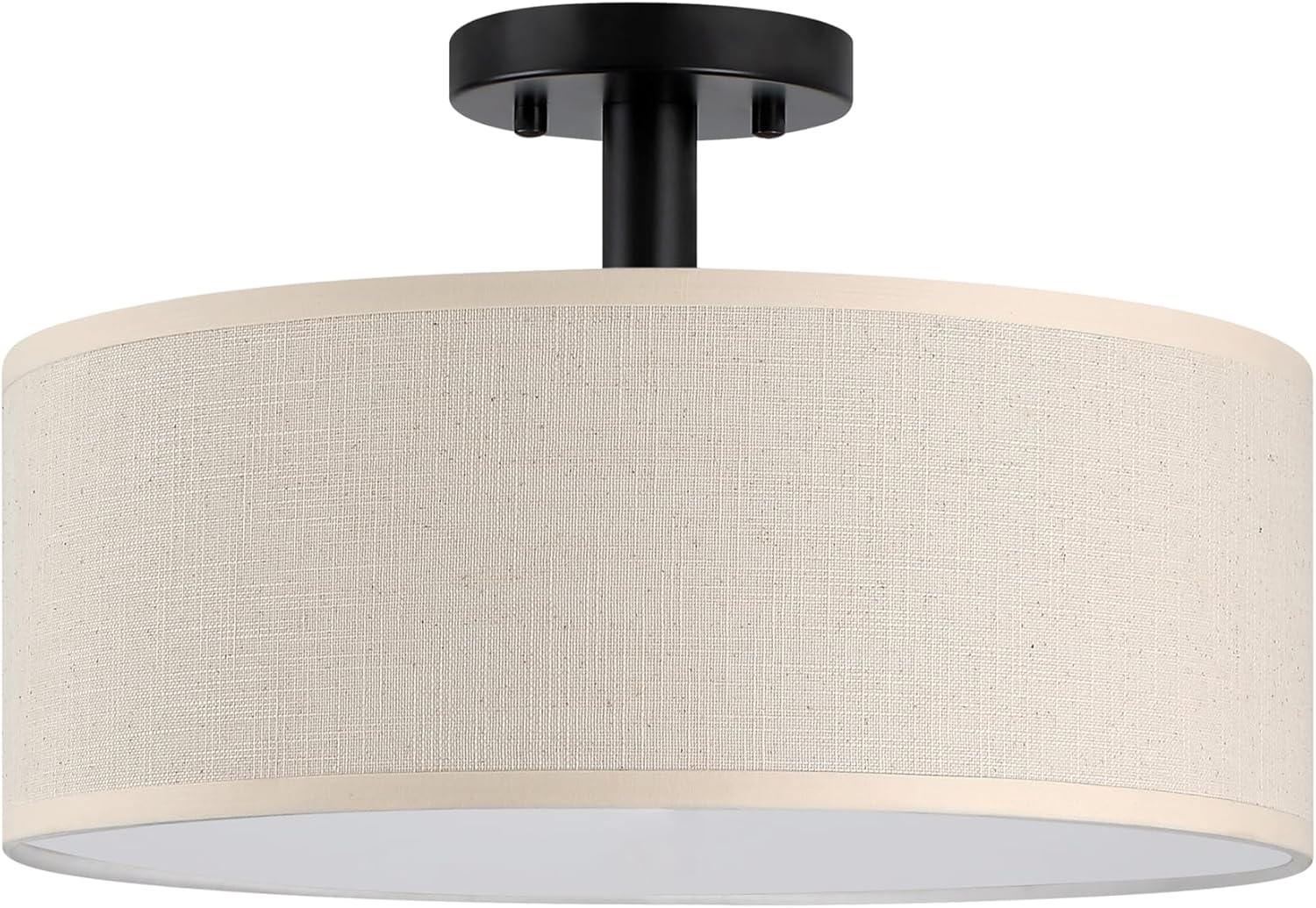 4 Light 18 Inch Semi Flush Mount Close to Ceiling Light Fixture,Cream Linen Fabric Shade Black Finish for Bedroom,Living Room,Dining Room Hallway