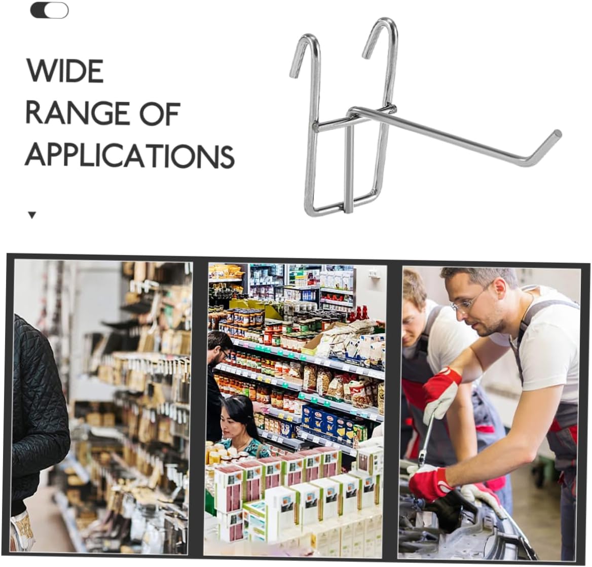 Package Include Hooks Features -Material:Iron grid fence hooks -Color:Silver grid wall hook -Size:15.00X6.00X3.00cm/5.89X2.36X1.18in grid panel hanging hooks -Can easily accommodate a wide range of items, making it suitable for organizing and showcasing different types of merchandise display hooks for grid wall. -Specifically designed for use on grid panels, providing a versatile solution for displaying various products grid wall stand. -Simple installation process, allowing for quick and convenient setup grid wall hangers. -The hook helps optimize space utilization, making it an efficient choice for maximizing grid panel capacity grid hooks. -Made from iron material, ensuring durability and resistance to wear grid rack hooks.Goods Informationgrid fence hooks With their simple installation process, you time while maximizing your wire .panel wire hooks This hook is perfect for displaying a variety of products on supermarket wire shelves or grid panels.grid wall panel hooks The hooks are wear-resistant, ensuring use