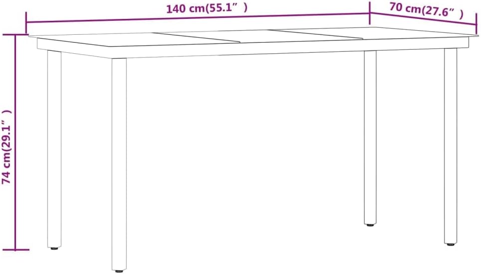 This patio dining set is a great choice for dining or relaxing in the outdoor space!The powder-coated steel frames make the table and chairs sturdy and stable for daily outdoor use. Thanks to the water-resistant PE rattan, the chairs are easy to clean and suitable for daily use. The smooth glass tabletop is easy to clean with a damp cloth and perfect for placing meals, drinks and other decorative items.Note: In order to extend the life of your outdoor furniture, we recommend you to clean it regularly and do not leave it outdoors without protection unnecessarily.Clean: Use a mild soap solution.Storing: If possible, store in a cool, dry place indoors. If the product is stored outdoors, protect it with a waterproof cover. Wipe and dry the excess water or snow from flat surfaces after a rain or snowfall. Allow sufficient air circulation to avoid moisture-related damage.Color: Brown and blackMaterial: PE rattan, powder-coated steel, glassTable dimensions: 55.1" x 27.6" x 29.1" (L x W x H)Chair dimensions: 21.9" x 21.1" x 37.4" (W x D x H)Seat width: 13.4"Seat depth: 16.9"Seat height from the ground: 17.3"Armrest height from the ground: 25.2"Assembly required: YesDelivery contains:1 x Table4 x Chair