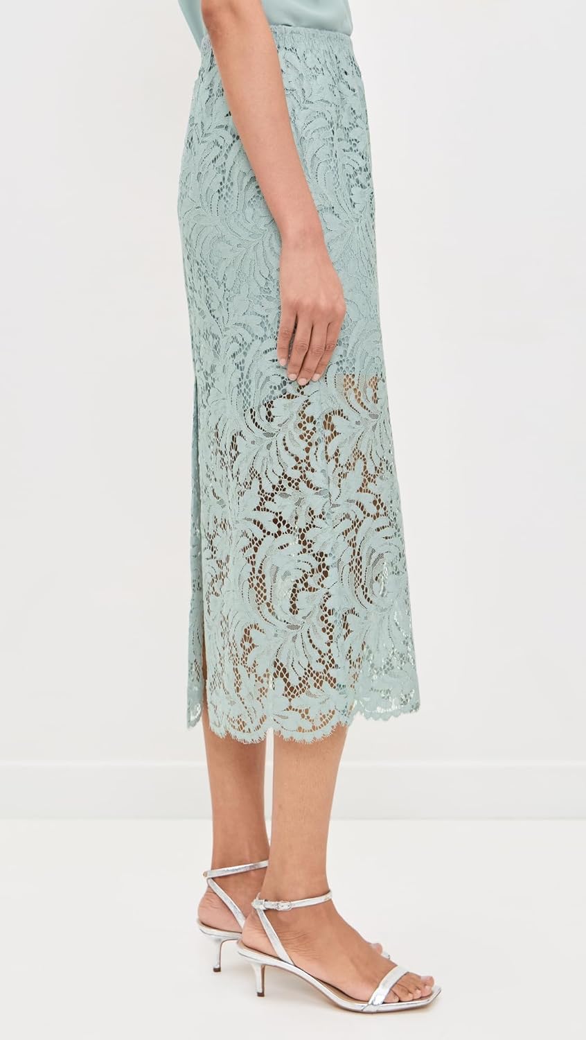 The Lydia Skirt is classic lace reinterpreted in a column silhouette. Cut from archival French lace with a botanical-inspired pattern, this midi-length sheath layers over a built-in mini slip for a streamlined, contemporary shape. Finished with scalloped edges, it’s a polished yet romantic piece for holiday evenings, cocktails, or special occasions.