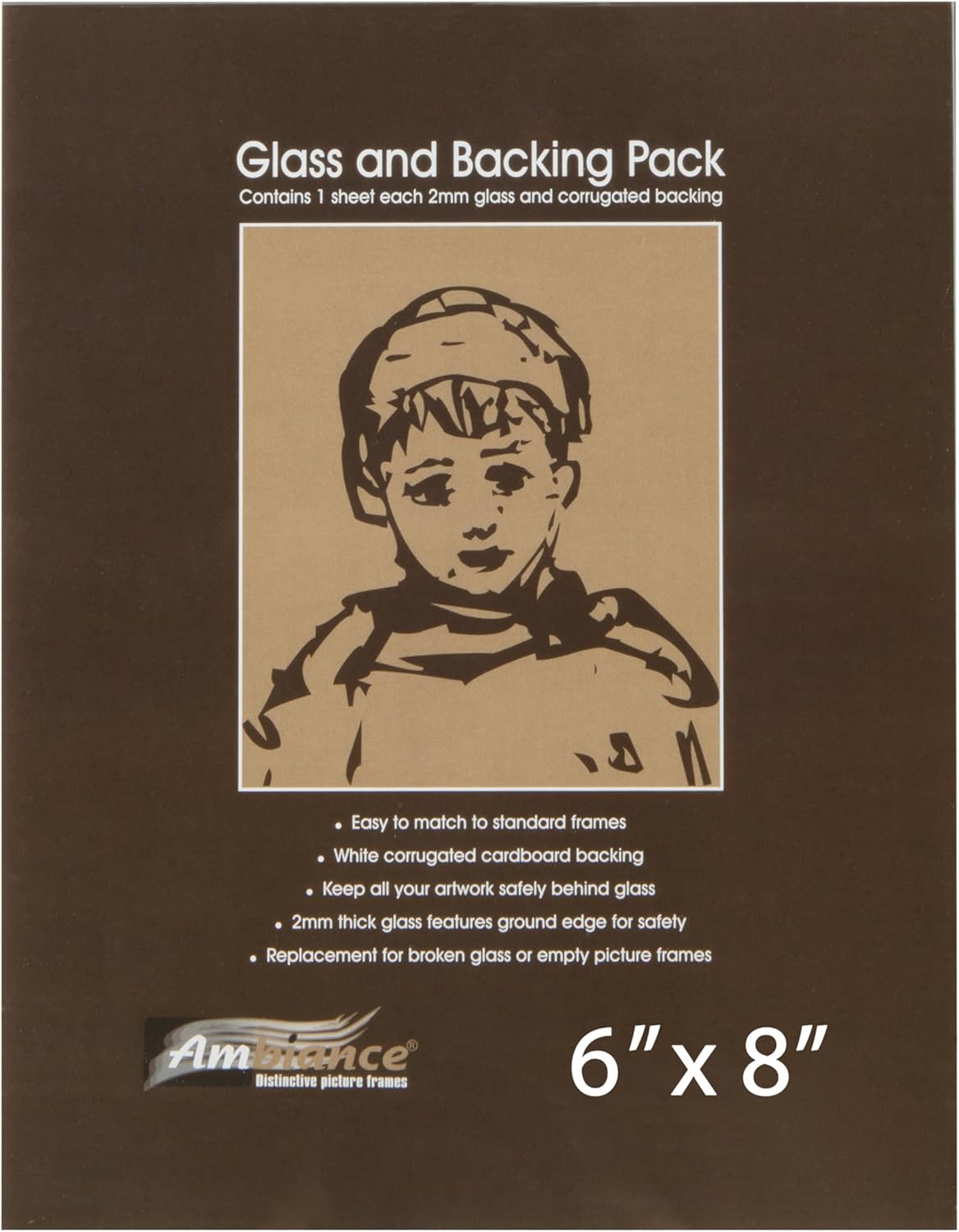 You've found the perfect frame for your latest masterpiece, but there's a catch: it's open faced, with no glass to Protect the artwork. Or perhaps a frame came with glass originAlly, but it's since been broken or lost. Not a problem! With new Ambiance Picture Frame Glass and Backing inserts, it's easy to create a complete frame from an empty one! At a generous 2mm thick, Ambiance picture glass Features smooth, ground edges for safe handling. The white corrugated cardboard backing provides a steady support for any lightWeight artwork, and the wide array of Standard Sizes Available makes it easy to match an insert to an empty frame. Whether you're framing Watercolors, photographs, documents, prints and more, make sure they're safely Protected in frames equipped with Ambiance Picture Glass and Backing inserts!