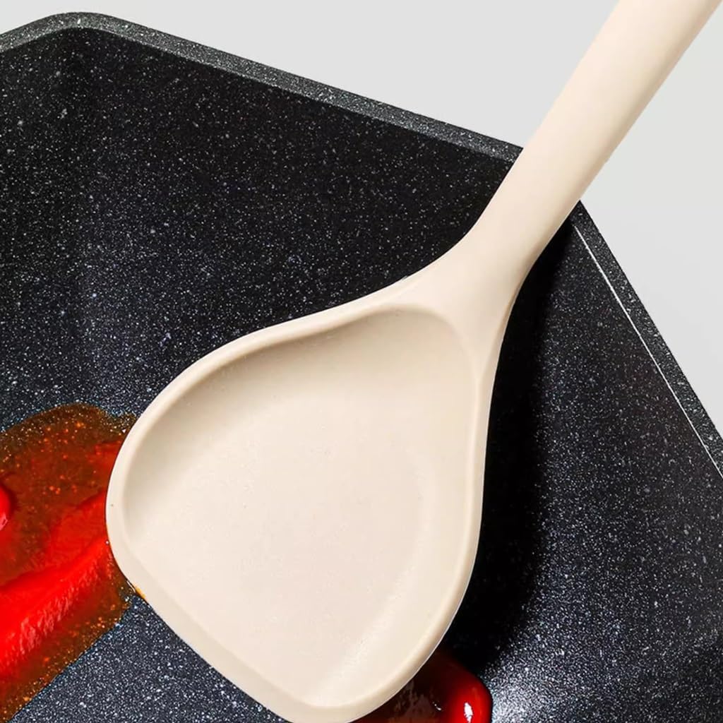 Integrated molding is easy to clean and does not easily hide dirt and dirt.Non stick material can be washed clean at once, making it easy to clean.Smooth shovel is closer to the blade surface. and easy to clean.Anti scald handle hanging hole storage.Name: Kitchenware 4-piece setMaterial: Soft siliconeColor: As shown in the pictureNumber of pieces: 4Specification: Kitchenware 4-piece set * 11. Due to screen display differences, there may be slight color differences in the visual. Please refer to the product received.2. Manual measurement may have slight errors, please understand.