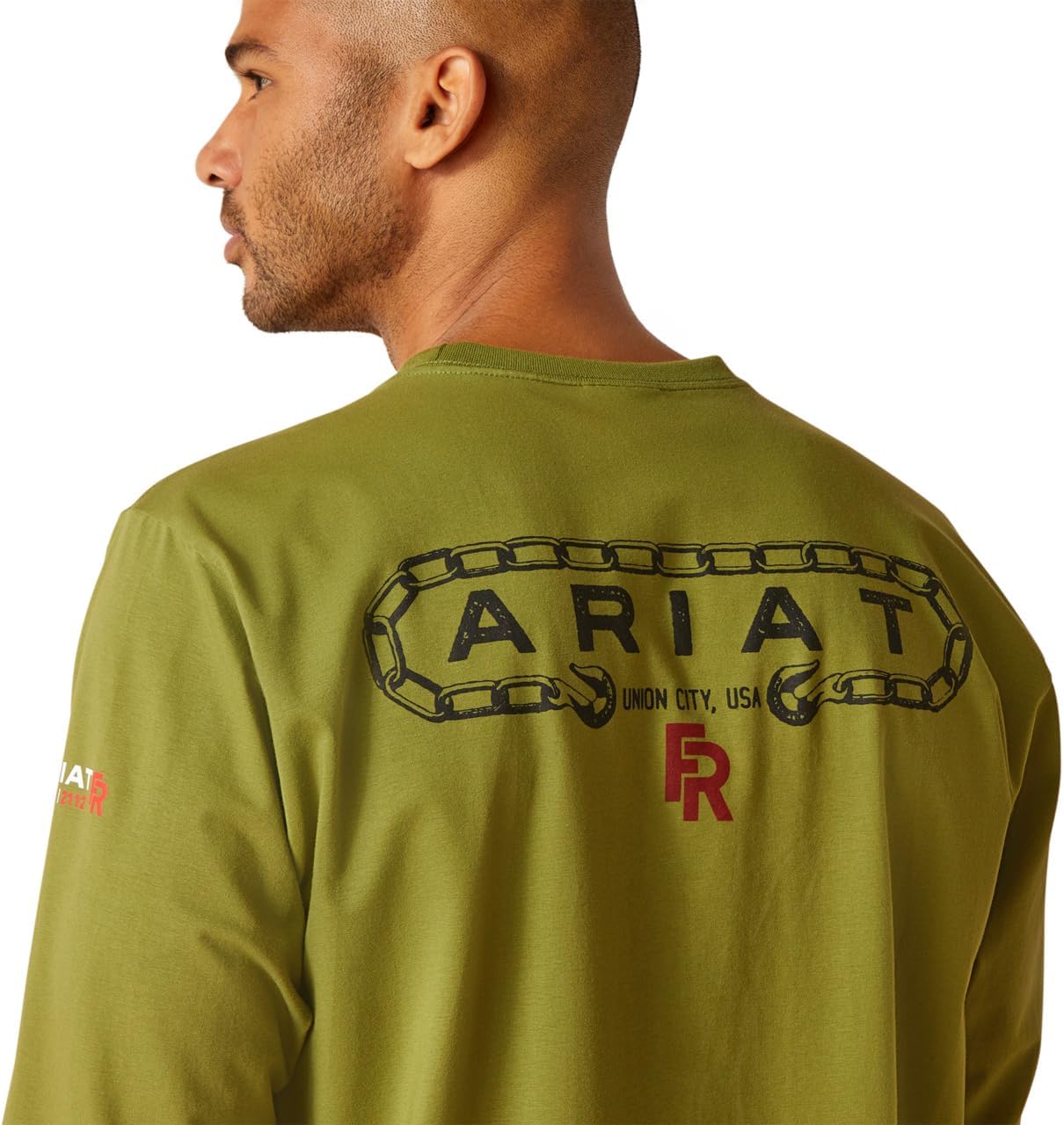 This flame-resistant t-shirt delivers the protection, comfort, and durability you need for work, in a silhouette crafted from an incredibly soft U.S.-grown Supima cotton blend. The graphic on the back lets you rep Ariat wherever you go.