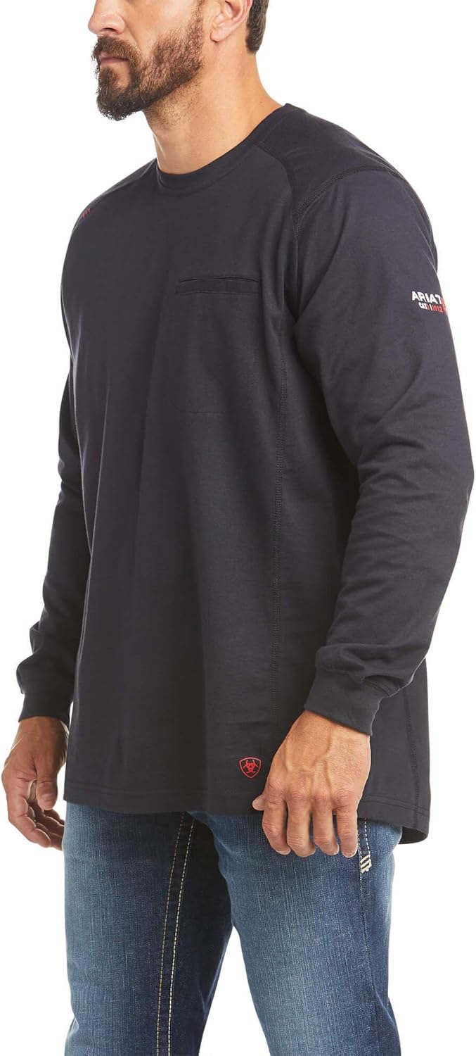 This flame-resistant T-shirt delivers the protection, comfort, and durability you need for work, in an everyday staple crafted from an incredibly soft U.S.-grown Supima cotton blend. Ariat added just-enough stretch and rolled the shoulder seams forward so you can move without restriction.