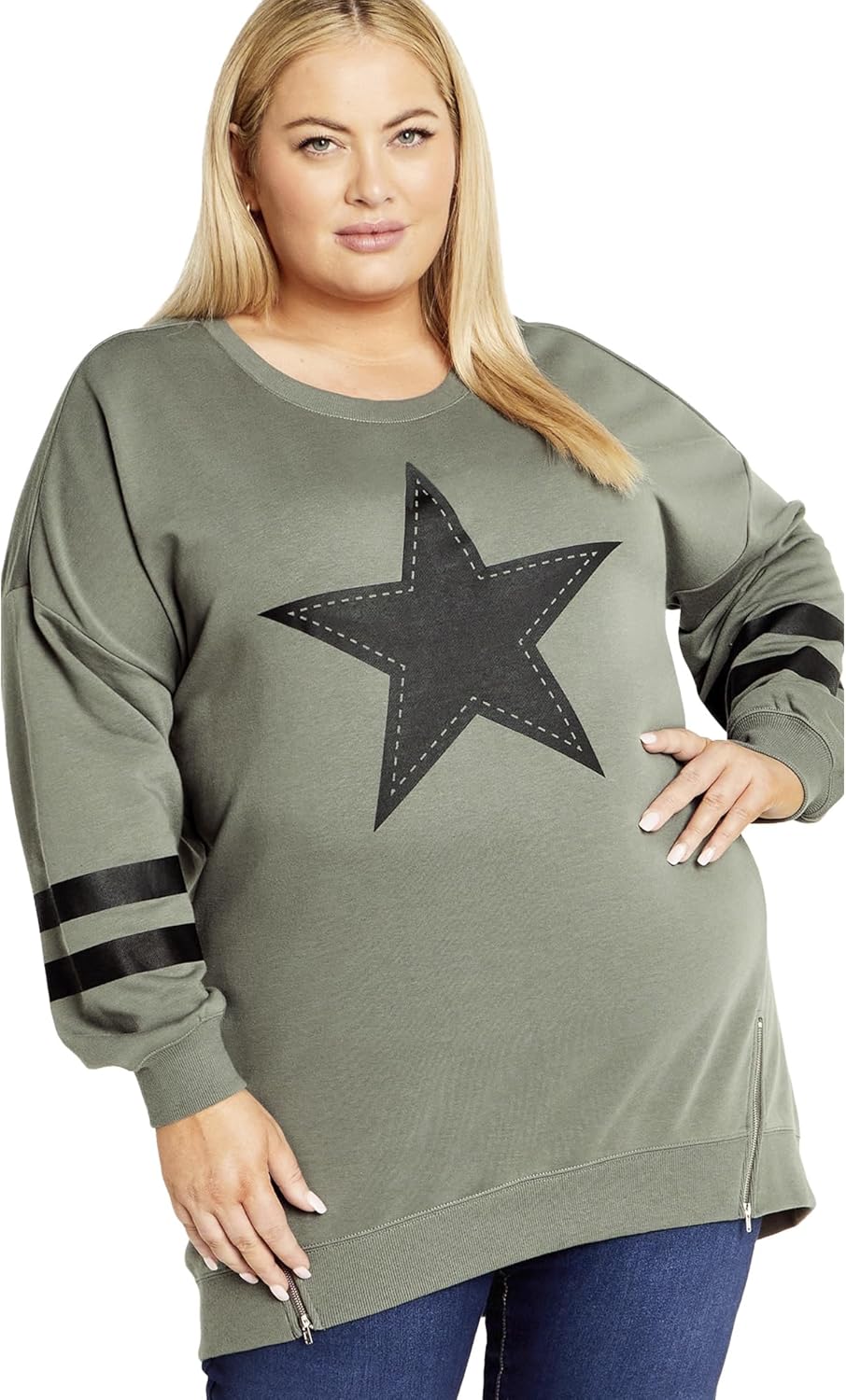Stay comfortable and fashionable with the You're A Star Sweater, designed with a loose fit for easy wear. The bold graphic front adds a playful touch, making it a great streetwear staple. Key Features Include: - Crew neckline - Long sleeves - Relaxed fit - Graphic front - Pull over styleFABRIC: 60% Cotton, 40% PolyesterFIT: Model wears an Avenue size 16. Bust: Relaxed fit. Waist: Relaxed fit. Hips: Relaxed fit. Length: This plus size sweater is hip length. Center back measurement: 36 inches.CARE: Machine washKey Features Include:Avenue