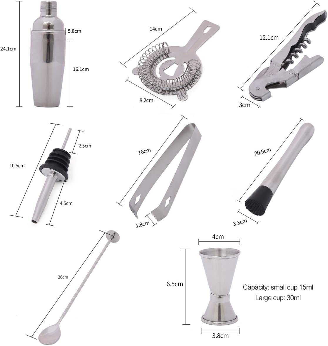 Bartender Kit You can also become an excellent bartender! Whether you are a rookie or a master, this product can make you handy. 10-piece cocktail shaker set with stand. Whether you enjoy it or have a party, this bartender set can make you look more professional and different. Great To Make Gin Tonic, Margarita, Dry Martini, Tequila Sunrise, Sex on the Beach, Manhattan, Bloody Mary or any other alcohol or liquor drink. It is an impressive set for special gift! Enjoy the cocktail party! All you need to do is fill your favorite cocktail,put on the cap,then shake it and you can enjoy it.You will enjoy the process and be proud of yourself. An impressive gift! You think it is just a mixology bartender kit?No,it is a bridge and a bond between cocktail enthusiasts, and it is perfect as a gift. Give such a gift to friends and family, I believe you will impress them! Package contents: 1 x cocktail shaker. 1 x measuring cup. 1 x Bar Spoon. 1 x heavy ice crusher. 2 x stainless steel spouts. 1 x ice clamp. 1 x storage rack. 1 x corkscrew. 1 x ice filter