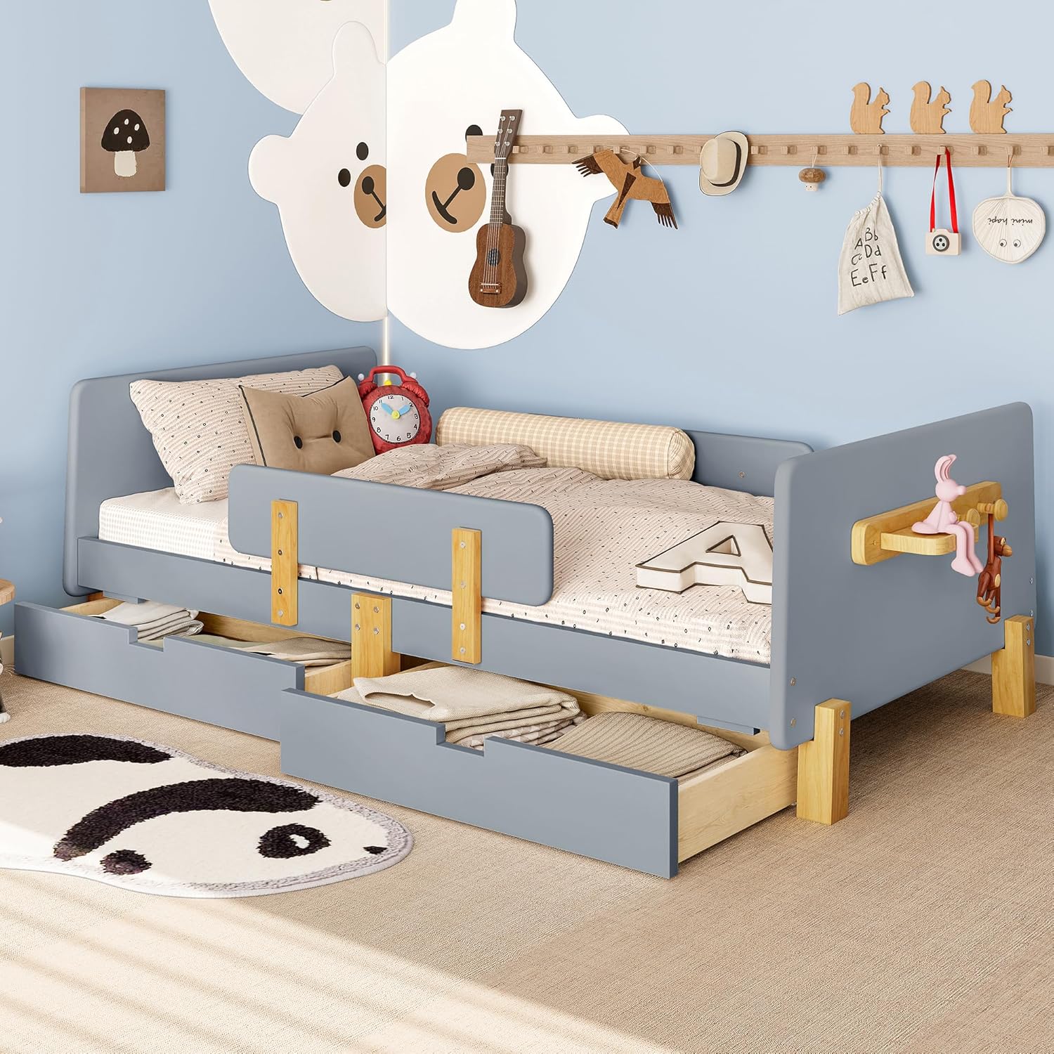 The thoughtful layout includes spacious drawers for clothes and linens, a small shelf for books or decor, and side hooks for easy access to accessories—perfect for keeping everything in order. With sturdy wood slats that eliminate the need for a box spring, this bed offers a supportive foundation for restful sleep. Its elegant white finish adds a clean, modern touch, making it suitable for any bedroom style—from minimalistic to farmhouse-inspired designs.