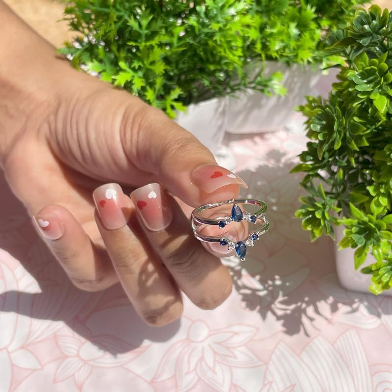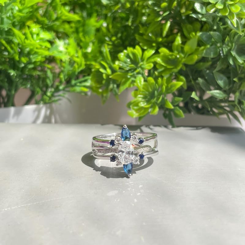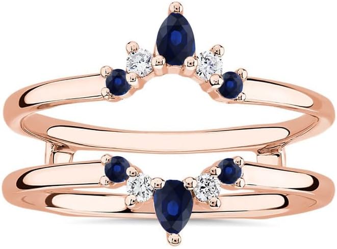 This Band Crafted in 925 Sterling Silver, available in 14K White, Yellow and Rose Gold Plating. Round & Pear Cut simulated Sapphire & Diamond set in prong setting.