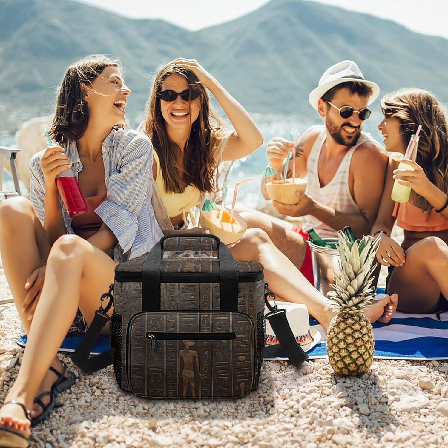 Versatile design: The Ancient Egyptian Hieroglyph print travel cooler bag stylish, gender-neutral design is suitable for all ages and occasions, whether for work, gym, outdoor events, or travel.Perfect for every occasion: This insulated food bag is not just for camping, rugged cooler bag is an excellent choice for everyday use, such as meal prep, lunch at work, grocery shopping, and more.Space-Saving design: The stand-up structure of the outdoor lifestyle bag saves space and makes it easy to store when not in use, insulated grocery bag perfect for compact packing.Machine washable: The reusable lunch bag is easy to maintain, food organizer bag is washable, but avoid prolonged soaking or bleaching to preserve its quality.