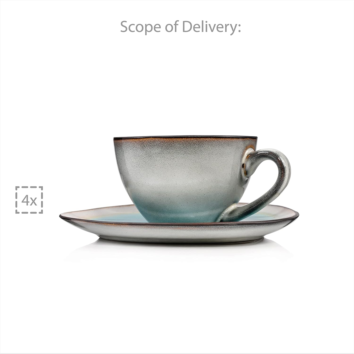 Sänger - Capri coffee cups and saucers set of 8 earthenware mugs - modern vintage design - 230 ml.
