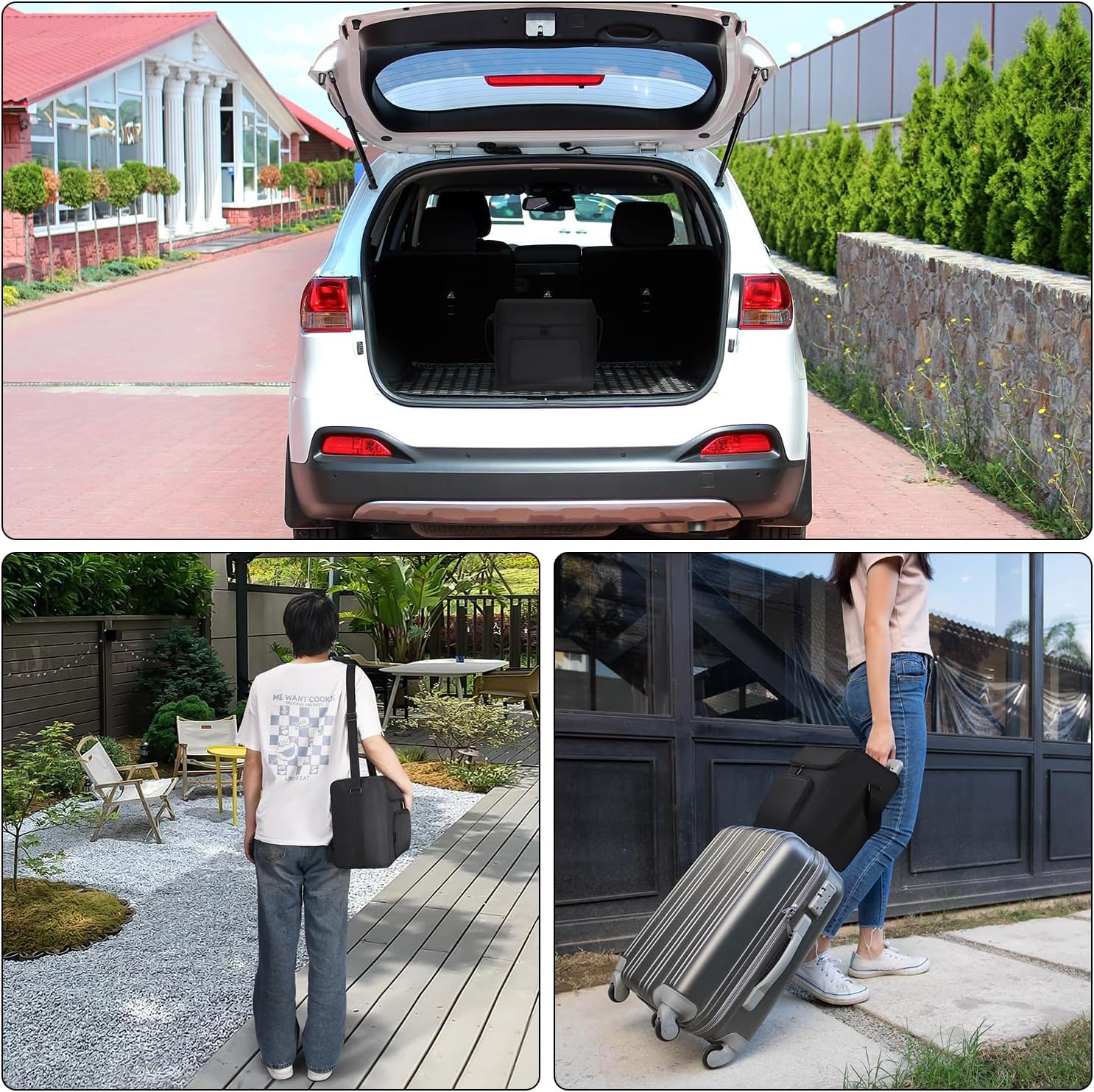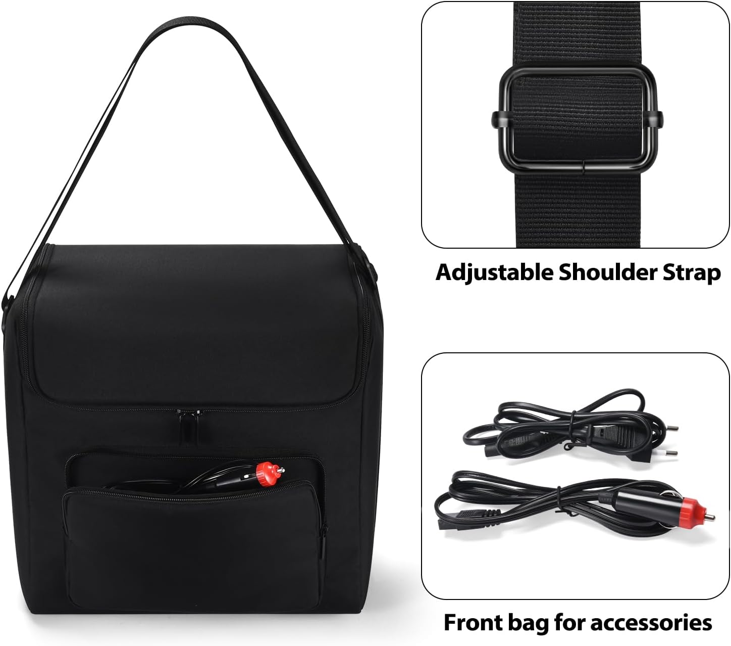 • Convenient to carry: Equipped with adjustable shoulder straps, with a length of 1280mm, multiple carrying methods, can be carried by hand or on one shoulder, reducing shoulder pressure; We also designed a convenient pull rod strap, which allows the storage bag to be placed on the pull rod for easy travel, hassle free, and convenient carrying of a mini refrigerator at any time. Whether it's outdoor travel, picnics or camping, you can easily carry it and enjoy the fun of chilled food at any time.