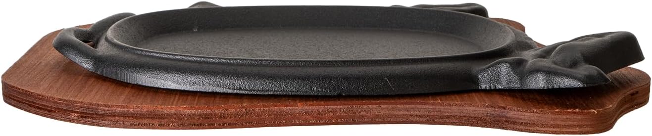 Cast Iron Steak Fajita Plate Set with wood Plate for Steak Pizza