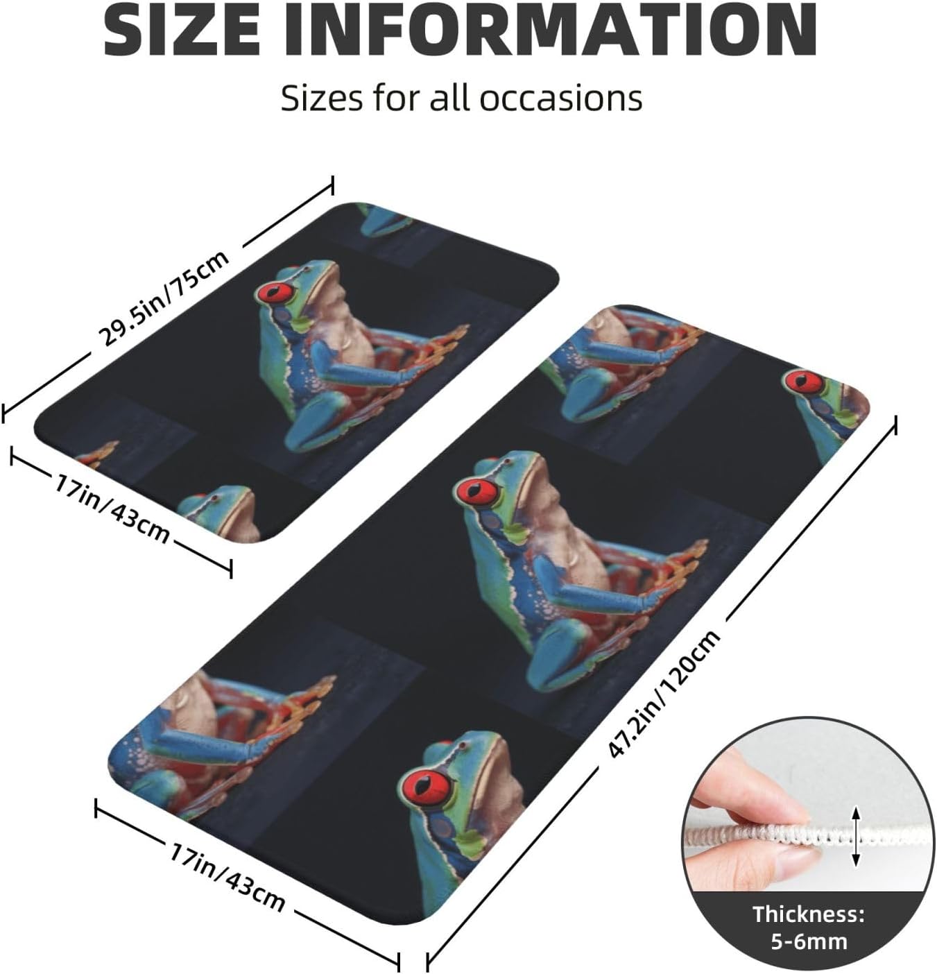 Kitchen Rugs and Mats, Anti Fatigue Comfort Standing Kitchen Runner Mat Colorful Frog Kitchen Floor Mat 2 Sets Boho Kitchen Rug for Kitchen Decor Floor Mat Runner Carpet for Hallways Farmhouse Kitchen Mat, Cushioned Anti Fatigue Kitchen Mats for Floor, Non Slip Rugs for Kitchen Floor, Colorful Frog Kitchen Mat Anti Fatigue Cushioned, Memory Foam Padded Standing Rug Washable, Non Slip Comfort Floor Runner for Home, Sink, Laundry, Office Cushioned Kitchen Mats for FloorSize: The set contains 2 rectangular mats (17.3"*29.5"+17.3"*47.2").Durable and non-slip: It's made of PVC material, the grain backing prevent slipping or shifting.Decent design: The simplicity pattern and color make your kitchen more stylish.Multi-purpose: Suitable for laundry, doorway, outdoor, kitchen, foyer, bathroom, etc.Easy to clean: Waterproof material make this anti fatigue mat easy to clean, just wipe it with wet cloth.Stylist Multi-functional Floral Anti Fatigue Kitchen Mats Set: These 2-piece farmhouse kitchen rug set includes a kitchen runner + rectangle kitchen carpet, fitting most kitchen spaces, also suitable as standing desk mat, laundry room rug and runner,office mat,doormat, bedroom rug ,bathroom rug mat, bedroom accent or other anti fatigue mat application, provides a warm accent for the home or kitchen.Also be great gift idea for Thanksgiving,Christmas or any other holiday!