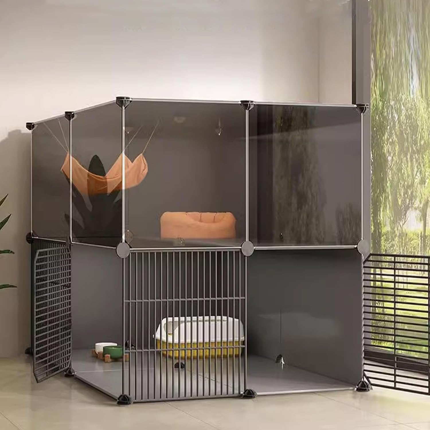 This transparent cat cage assembly kit is an exciting and innovative product that provides cats with a transparent world while bringing you the joy of DIY. Give yourself and your beloved cats a new living experience, and let our product accompany you and your pets in creating wonderful moments together. Purchase now and embark on an exploration journey that belongs to you and your cats! Cattery specifications Name: DIY cat cage / Pet fence / Pet playpen / Cat enclosure / Cat crate / Cat house / Cat cage villa / Cat apartment cage / Cattery Material: Resin + Metal + ABS Size: (The size is as shown in the picture) 75*39*73cm , 75*75*73cm , 75*39*109cm , 111*39*73cm , 111*39*109cm , 111*49*109cm Assembly required: Yes Application Scenarios: Indoor Cat Housing: Provide a safe, comfortable, and enjoyable living environment for indoor cats, allowing them to meet their needs and enjoy life. Breeding Farms or Shelters: Provide a convenient cat cage solution for commercial breeding farms or stray cat shelters, facilitating the management and observation of cats' conditions. Accessories list: Cat cage *1 Reinforcement buckle *some Installation tool *1 Cat bowl *1 Cat litter shovel *1 Cat nest *1 Cat hammock *1 Note: 1. Due to manual measurement, there may be an error of 1 to 3 cm. 2. Product color may vary due to light, angle, monitor differences, and monitor contrast/hue saturation. Please refer to the actual product.