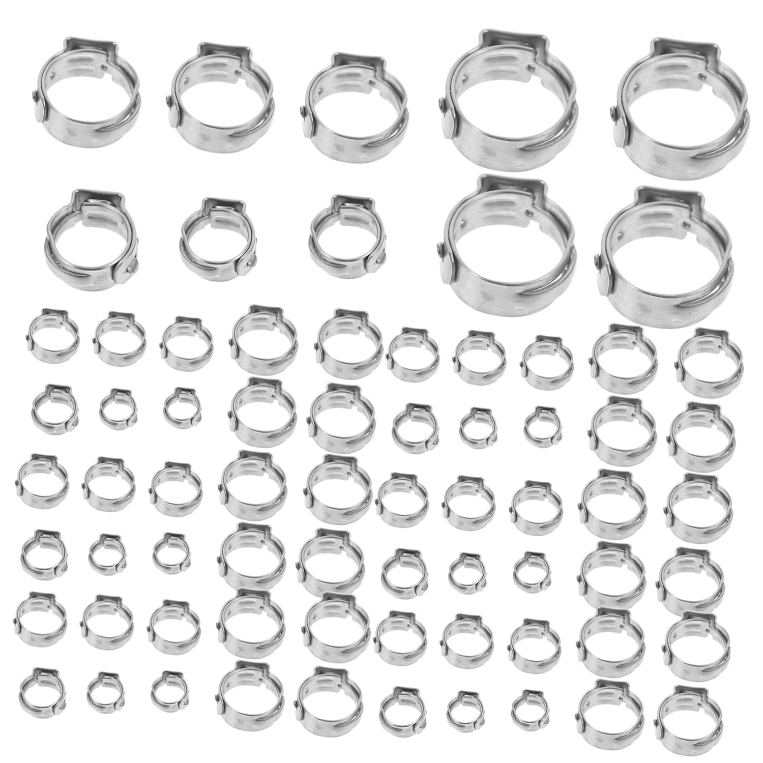 Package Include 210 x Tube Spring Clips Features -Material:304 stainless steel pex crimp rings -Color:Silver pex clamps -Size:1.70X1.50X0.70cm/0.67X0.59X0 3/4 pex . - These are different hose clamps for different tubing securing use, very practical and professional pex fittings. - Crimp clamps can be applied to secure hoses, vacuum hoses, air lines, garden hose, , fuel lines, etc pex crimping tool. - Heavy duty 304 stainless steel pinch clamp has rust resistance, resistance, and oil resistance hose clamp. - Sophisticated production, with good performance and higher fixing role, crimp rings bring you more convenience pex tubing clamp. - The tubing clamps are made of 304 stainless steel material, has good durability and practicality, strong wear , not easy to deform gripedge tools.Goods Information clamp These hose clamps are made of durable and sturdy 304 stainless steel material, will not easily damaged or deformed, providing you with a long term service.crimp tool These style ear tubing clamps are easier to install, clamp more securely, and fast