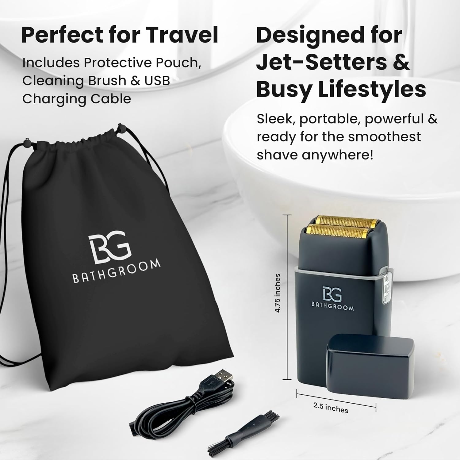 | Included Components | BathGroom Titanium Foil Shaver, Cleaning Brush, Drawstring Carry Case, Protective Cap, USB Charging Cable |
