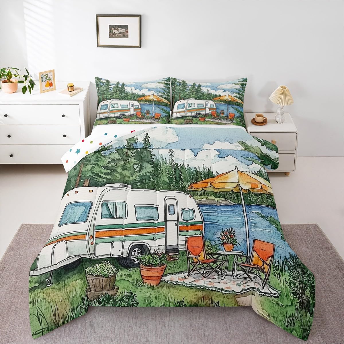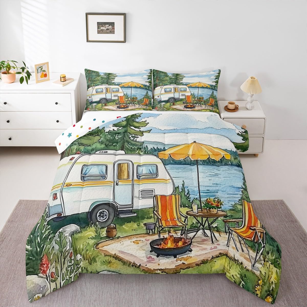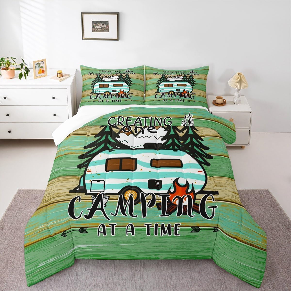 Elevate your bedroom decor with this exquisite comforter set featuring an aesthetic design. Toddler Bedding Set: A comforter 42"x57" and a decorative pillowcase 20"x30" Twin Size Bedding Set: A comforter 68"x90" and a decorative pillowcases 20"x30" Full Size Bedding Set: A comforter 79"x90" and two decorative pillowcases 20"x30" Queen Size Bedding Set: A comforter 90"x90" and two decorative pillowcases 20"x30" King Size Bedding Set: A comforter 90"x104" and two decorative pillowcases 20"x36" Inspired by all the beautiful things in the world, this stylish artwork captures the essence of vibrant pattern on soft, cozy bedding. The vibrant colors and intricate details create a serene and calming atmosphere, suitable for a peaceful night's rest. Crafted from ultra soft materials, this comforter set is not only visually stunning but also incredibly comfortable and stylish. Whether you're seeking a touch of modern charm or a vintage oasis, this comforter set will transform your bedroom into a tranquil retreat. Elevate your sleeping experience with this artistic masterpiece.