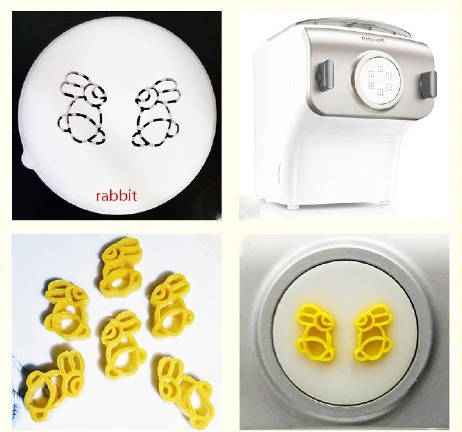 FEATURE Material: Plastic Use: To create your favorite pasta shape simply attach one of the shaping discs to your Phillip's pasta maker machines. Your pasta maker does all the hard work for you. Make a selection of fresh, homemade noodles in a variety of shapes and sizes to suit your individual needs. Enjoy fresh and delicious pasta easily at home. CLEANING After usage, remove any leftover dough from the back of the disc; Soaking the disc for two days in water Finally, use a water hose to clear all of the dough from the disc. METHOD For Farm Shape Kid's Pasta Maker, Farm Pasta Noodles Disc for Kids For dough, use HOT water. Allow the dough to rest for a few minutes. Extrude twice: any Philips disc has done this the first time with thick and large holes. Extrude using formed discs after cutting the spaghetti short and re-inserting it. Cut shapes with a shape cutter.
