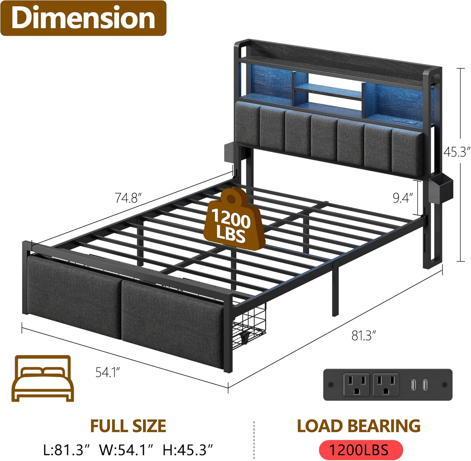 | Other Special Features of the Product | Lighted, No Box Spring Needed, Squeak Resistant, Storage Drawer, USB Port |