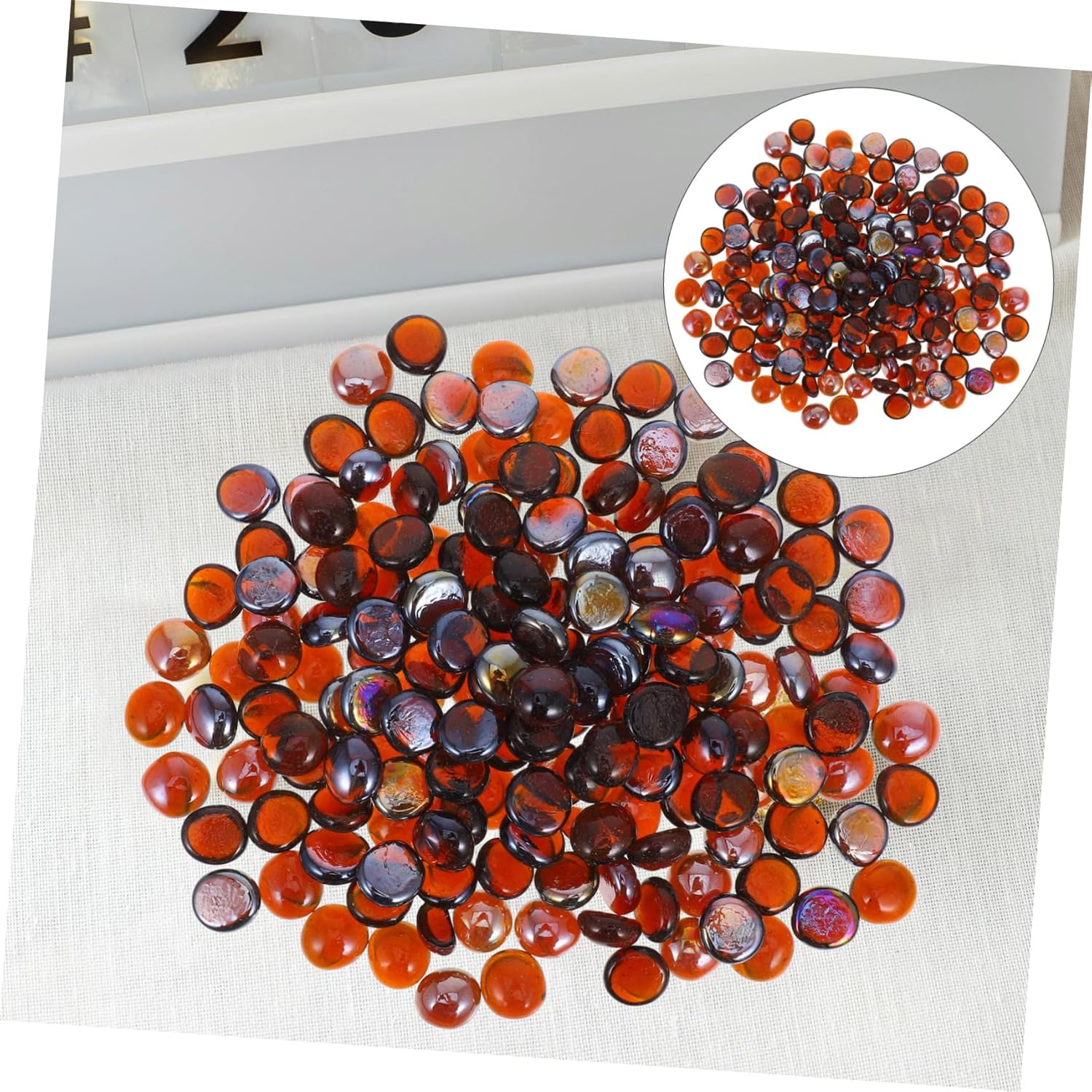 Description Beads 1 Bag Decorative Blended Flat Round Drops Fish Tank Vase Fillers for or Propane Fireplace Fire Table.Features-Note: About 1KG for each bag.-Color: Transparent-Material:Glass-Size: 0.71X0.71X0.20inPackage Including1 x Bag of Glass Beads