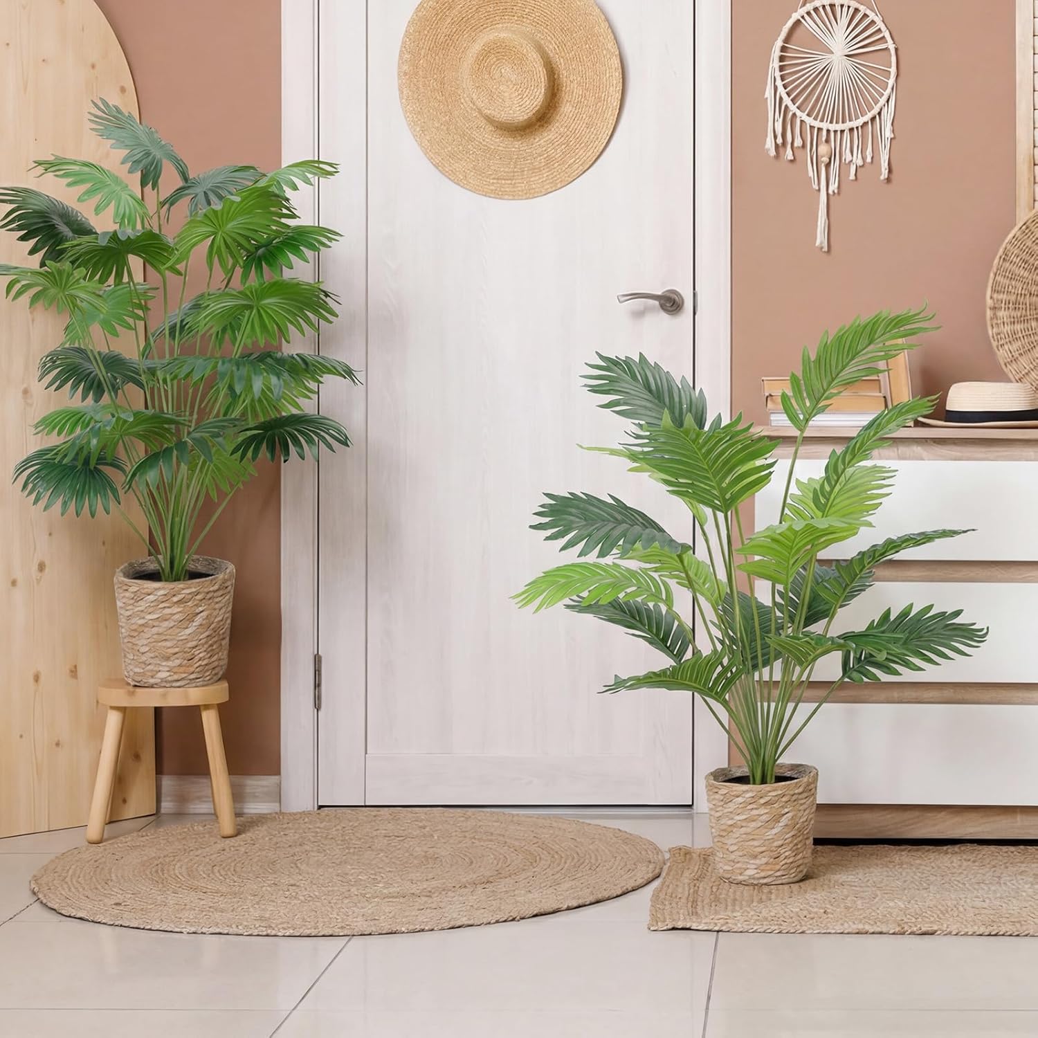 | Included Components | Woven basket, Artificial palm plant, Black flowerpot |