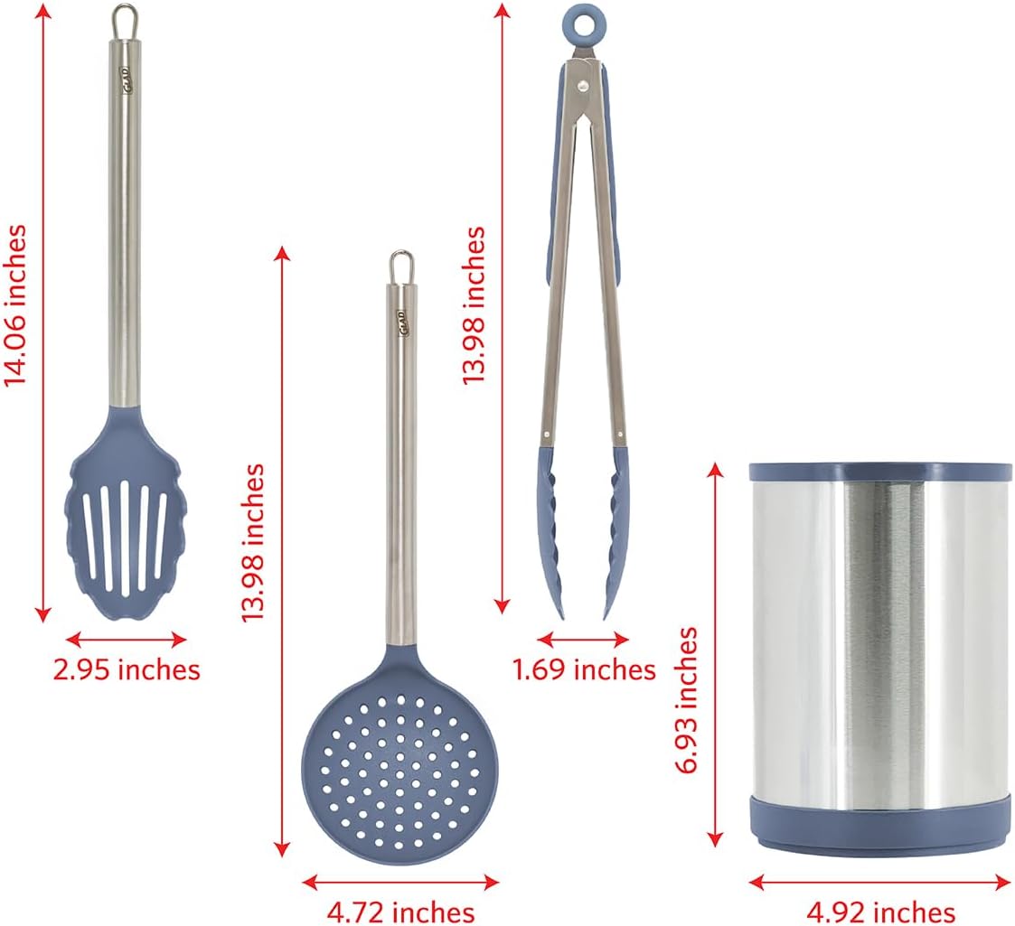 | Included Components | Turner, slotted turner, slotted spoon, ladle, spaghetti server, 12 inch tongs, skimmer, and utensil holder |