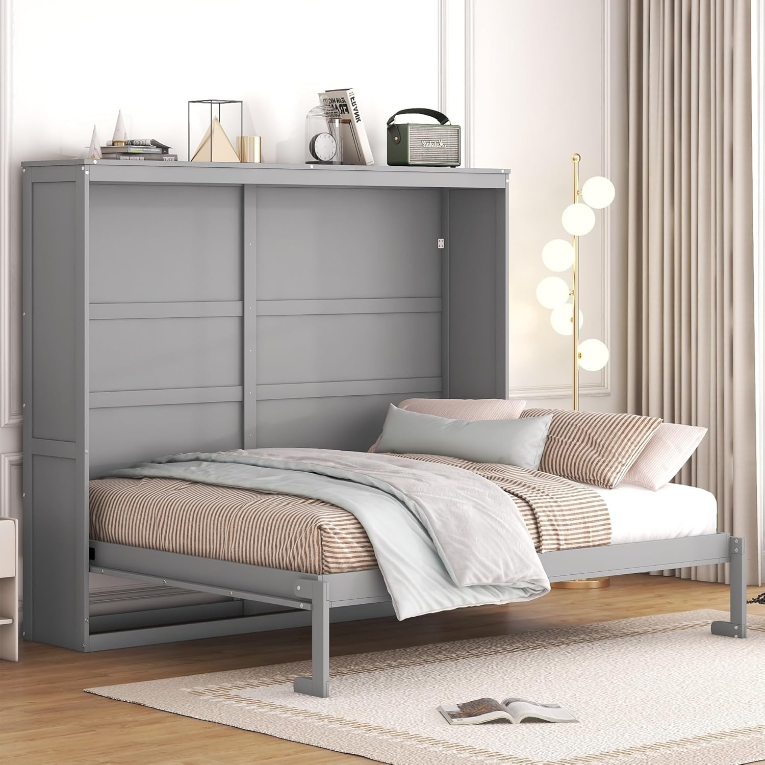 1.This Murphy bed can be folded away into a cabinet to open up floor space in any room. Maximum 8 inch mattress can be folded into the cabinet as well. 2.A wall bed is the ideal space-saving furniture for a multi-use guest room, home office, or home gym. 3.The mattress support features flexible slats that follow the curves of the body and absorb pressure for maximum comfort. 4.This space saving bed can be slept on every night and works perfectly in a small apartment or studio. 5.The hide away bed is easy to use, simply pull on the handles and flip the support leg down onto the floor. Description Material: Plywood+MDF Size : Full Color: White/Gray Overall Product Weight: 262lbs Bed Weight Capacity: 600lbs Spring Box: No need Assembly Required: Yes Overall Product Dimension:: 82.''L x 16.1''W x 82.6''H Recommend Mattress Thickness of Bed: 8-10'' Origin: Vietnam Numbers of Package: 2 Notes Manual measurement has been used,there may be some reasonable error. All the pictures are taken by actual samples, slight chromatic aberration may occur due to lighting or display.