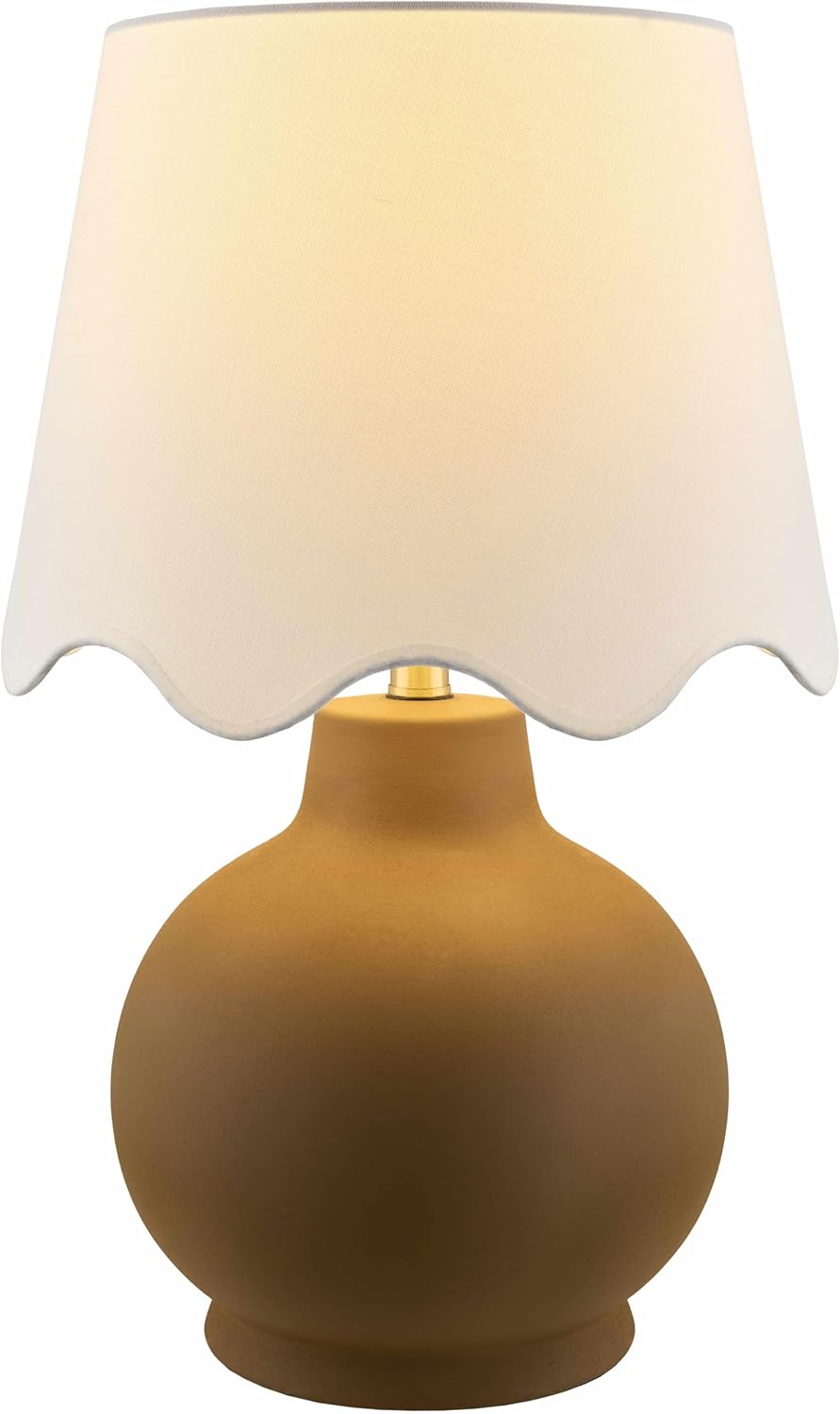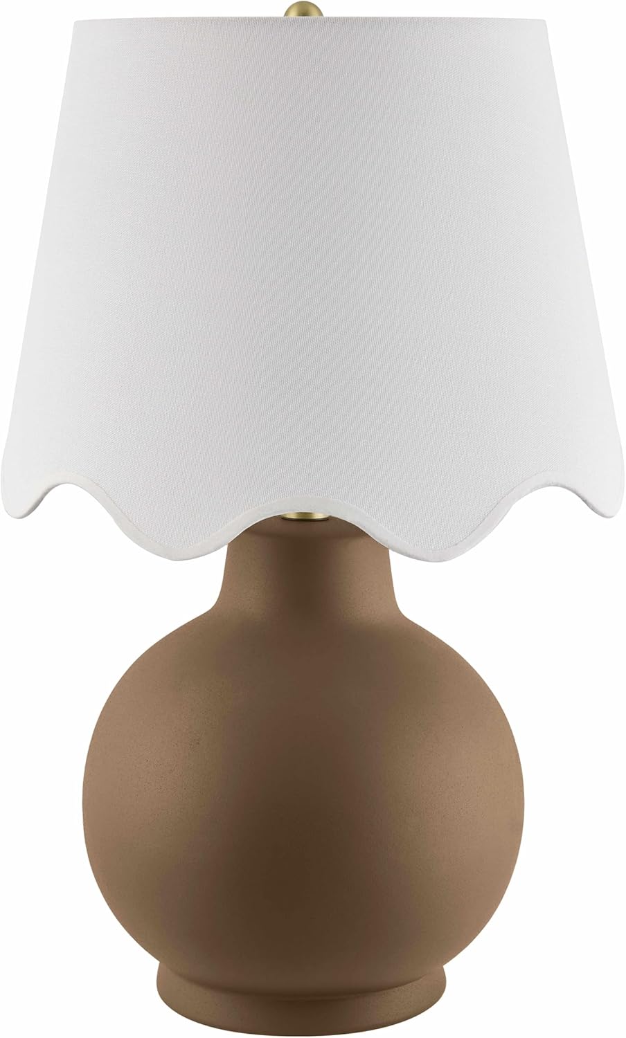 Brand: Hauteloom Collection: Ranshofen Colors: Green, Dark Red, Clear Style: Traditional Size: 23"H x 14"W x 14"D Shape: Circular Material: Base: Iron; Body: Ceramic; Finial: Iron; Shade (Inside): Polyester; Shade (Outside): Linen Roomtype: Living Room, Bedroom Made in: China