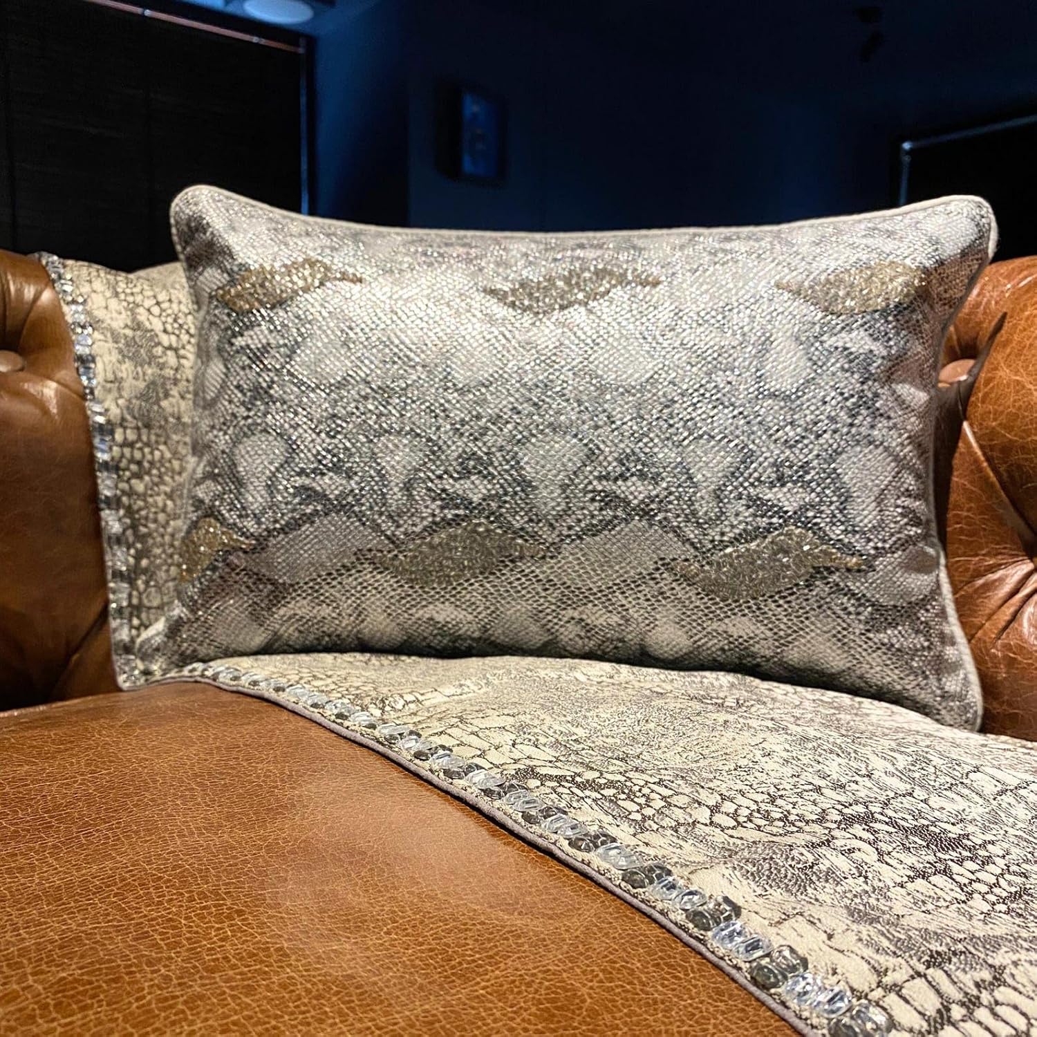 Silver Rose Garden is an exclusive 100% handmade decorative pillow cover designed and created with intrinsic detailing. A perfect item to decorate your living room, bedroom, office, couch, chair, sofa or bed.Decorative Lumbar Pillow Cover Details:Condition: 100% Brand NewDimension: 12 x 18 inch (30 x 45 cm)Fabric: Art SilkMaterial: SilkColor: SilverColor Map: SilverPattern: ContemporaryStyle: ModernBack of the Cover: Plain fabric with concealed flap covered zipper on the back for easy insertion and removal of insertsNote: This listing for decorative Lumbar pillow cover does not include Pillow or Inserts. We do not sell pillow inserts on our store. Due to the difference in computer monitors, actual colors may slightly vary.The HomeCentric is the place where luxury is coated in comfort. Coveted by many, we offer a wide range of decorative pillow covers, euro shams, bed runners, table runners, duvet covers and even fabrics for your curtains and other home décor products. Handcrafted by Indian artisans, our products exhibit fine finishing and style to meet all your expectations.Our services reach out from customization to endless effort from your first click to the day we deliver and even after that. Feel The HomeCentric as your home for décor.
