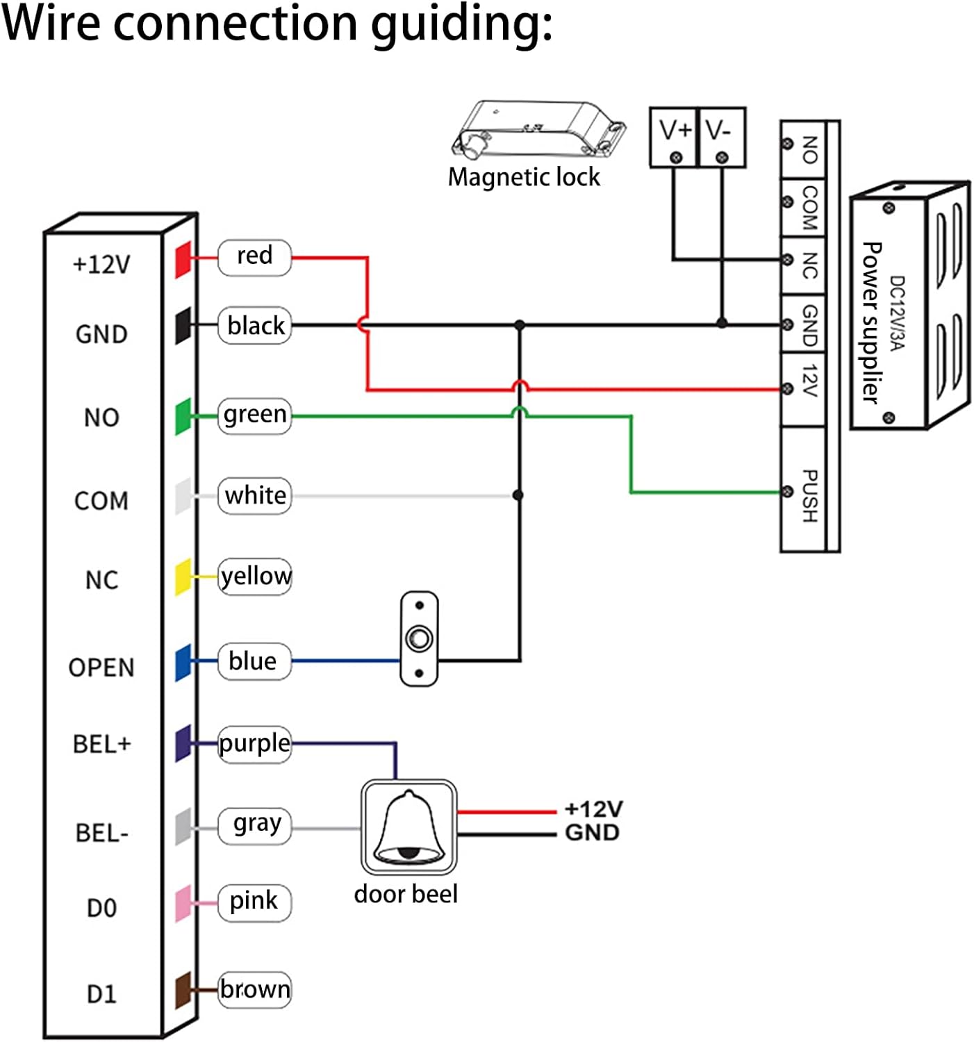 This Bessmarhm keypad comes with a waterproof housing, the high-quality entry keypad is allowed to work outdoors.This universal keypad is strongly recommended to use with the 10-24VDC access control system. Standard Wiegand 26 output, work as an extra card reader. The durable ABS material cover protects the keypad for longer operating life. Working Temperature: -40℃~+50℃ Easy DIY installation & programming within minutes. Contactless RFID transponder technology. Simply enter the password or tap the card. High convenience of keyless operation. Three Open Modes for Your Selection CODE - Format of All the Passwords: 4 digits TAG - RFID Card Type (Not Mandatory): 125KHz EM or ID card/tag (included 5pcs key RFID Card) CODE + TAG/CARD - User Capacity: 2500 users