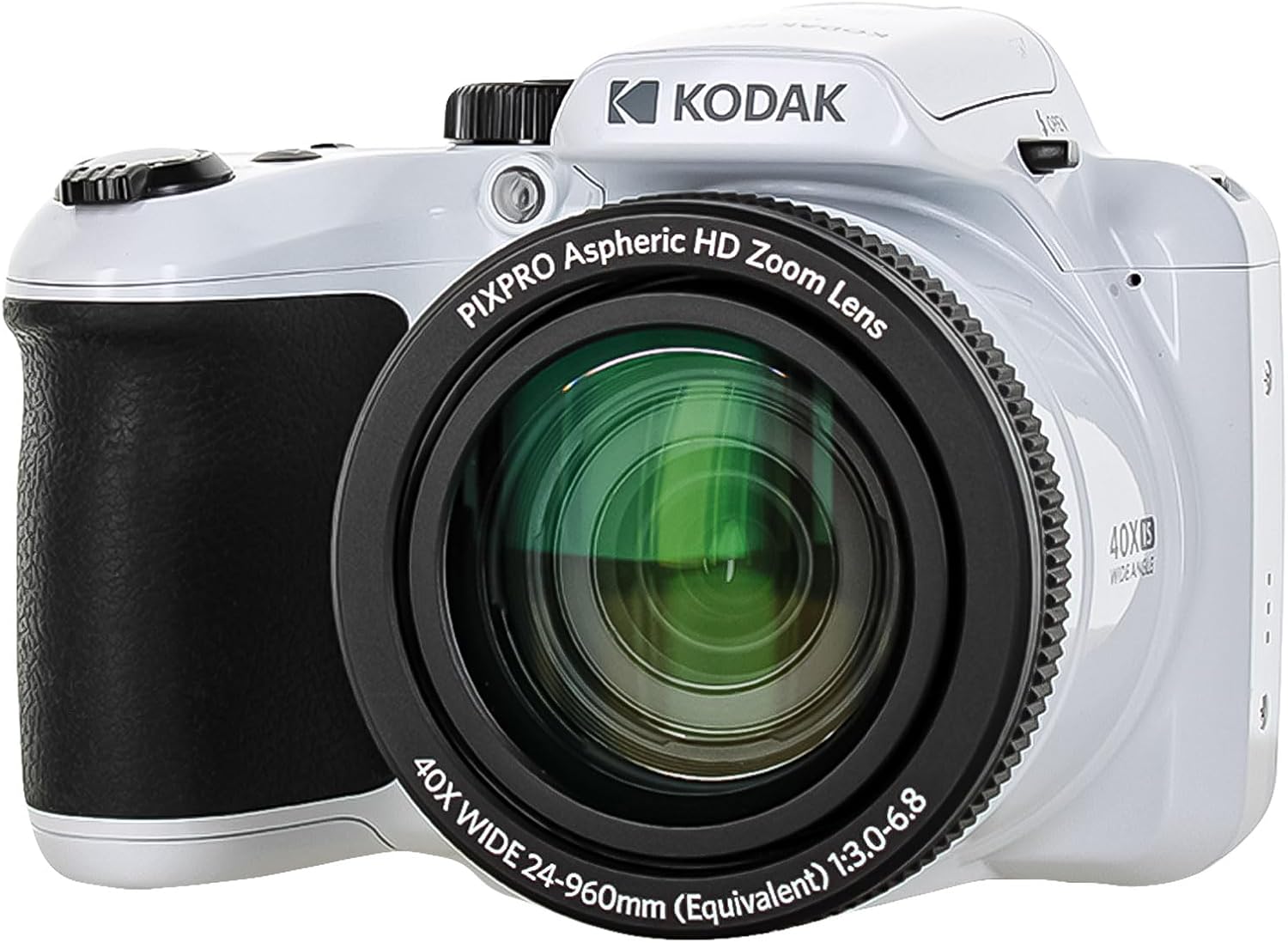 The Kodak PIXPRO AZ405 stands out with its 40x optical zoom, providing an impressive 24-960mm equivalent focal length range that caters to a variety of shooting needs—from sweeping wide-angle scenes to distant telephoto subjects. With optical image stabilization, this camera reduces shake, ensuring sharper results even when shooting handheld or at extended zoom levels. At the core of the AZ405 is a 20MP 1/2.3" CCD sensor, which delivers high-resolution stills and supports HD 720p video recording at 30 fps. The sensor’s ISO sensitivity spans 80-1600 (expandable to 3200 for 4MP images), enabling reliable performance in varied lighting conditions. For enhanced creativity, the 180° panorama mode allows users to capture sweeping, wide-field compositions. This camera is user-friendly and packed with features like Face, Smile, Blink, Cat, and Dog Detection modes, which tailor settings for ideal portraits and pet photography. The 3.0" 460k-dot LCD monitor simplifies composition, menu navigation, and image review. Powered by four AA batteries, it ensures convenience with approximately 280 shots per set, making it a practical and versatile option for everyday photography.This Bundle Includes: Kodak Pixpro AZ405 Digital Camera in White64 GB Memory CardRechargeable BatteriesCaseNeck StrapLens CapsFull Cleaning KitCard ReaderCard WalletUSB CableCap Keeper