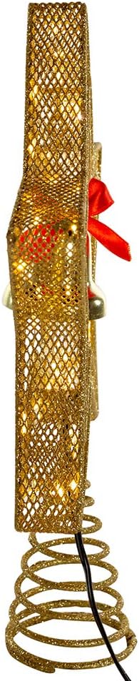 This Kurt Adler 12-Inch 45-Light Gold Star Tree Topper with Bell is a beautiful, unique way to accent the lighting on your Christmas tree. This star tree topper is lit with 45 warm white LED fairy lights and includes a 72-inch lead wire with adapter. This product is for indoor use only.