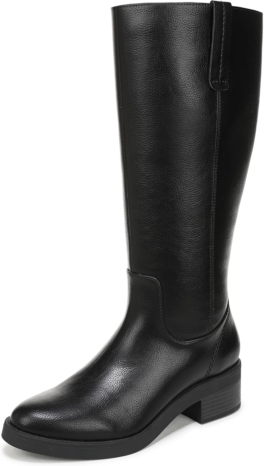 Always look put-together in these comfortable wide calf boots for women with a classic and versatile design. Faux leather with a round toe, inside zipper, and pull tabs for easy on/off. Trusted Soft System® comfort technology for unmatched cushion, support, and flexibility in every pair. Traction sole provides you with extra stability. 13 inch boot height, 16 1/4 inch calf circumference. Note: Measurements based on size 6 boot. For each half size larger, shaft height increases by . 12 in, circumference by . 20 in. Just Right Height 1 3/4 inch block heel.