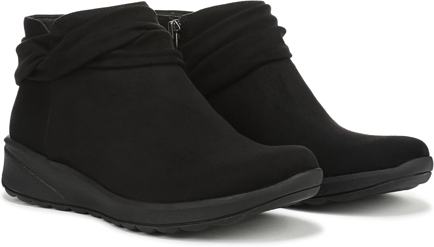 Warm and washable boots! This ankle bootie keeps you feeling good as new after every wash. Stretch fabric upper with partially recycled linings and top cloth with a round toe. Side zipper. BLOOM™ materials: Eco-conscious algae-infused foam layer under the insole. BZEES Cloud Technology: Designed so you’ll feel weightless, energized and free. Ultra Lightweight: Step lightly with a nearly weightless feel. Dynamic Stretch Fabrics: Move freely in shoes with built-in stretch. FreeFoam™ Comfort: Low pressure insoles with maximum foot contact and cushy arch support. ComfortBlast Foam: Our most premium foam with unbelievable rebound, luxe cushioning, and comfort that never quits. 3.15 inch boot height, 9.61 inch leg circumference. 5/8 inch platform, 3 1/8 inch heel. EVA outsole. Get Width It: Countless pairs of Bzees come in wide width shoes for women. Machine Washable: Wash on cold and air dry.