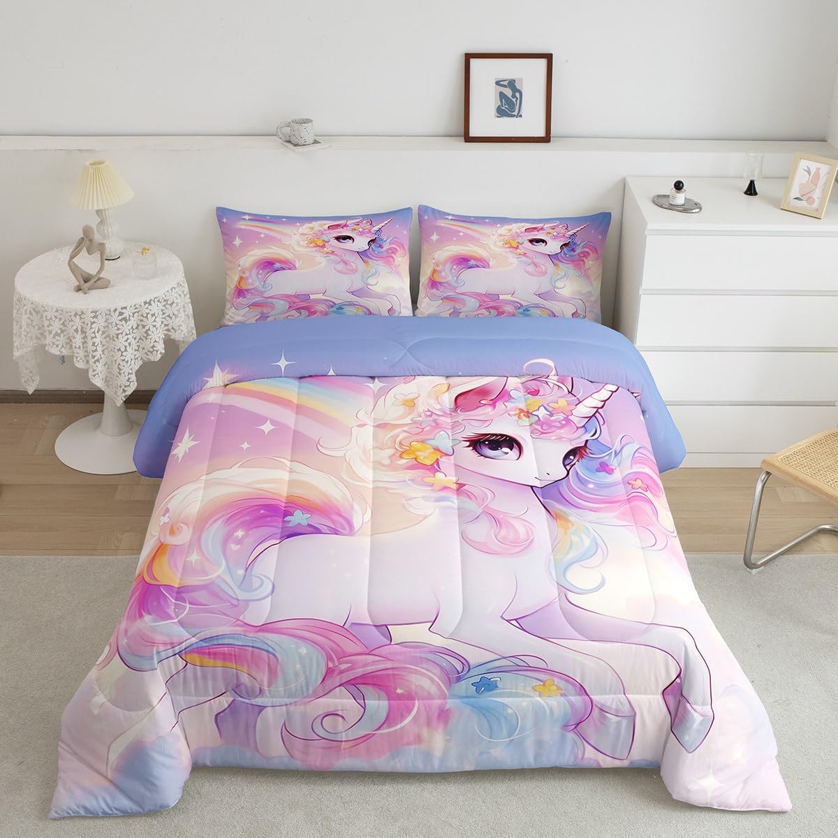 Package Include: Comforter and Pillowcase. Makeover your bedrooms every season with our Comforter sets. Perfect item for your room, girls boys youth room, master bedroom. Size Information: Twin size down comforter 68"W x 90"L and 1 pillow case 30"W x 20"L. 2pcs with 1 Bed Comforter and 1 Pillowcases in A Bag Full size down comforter 79"W x 90"L and 2 pillow cases 30"W x 20"L. 3pcs with 1 Bed Comforter and 2 Pillowcases in A Bag Queen size down comforter 90"W x 90"L and 2 pillow cases 30"W x 20"L. 3pcs with 1 Bed Comforter and 2 Pillowcases in A Bag King size down comforter 104"W x 90"L and 2 pillow cases 36"W x 20"L. 3pcs with 1 Bed Comforter and 2 Pillowcases in A Bag Useful and practical A luxurious product for homes, dorm rooms, hotels, guest rooms. Practical to use for being polyester, feels like cotton which is Super Soft and Breathable. No chemicals used, No dye substance harming the health of you or your family. Unique design: Vivid Colors won't fade thanks to new 3D digital printing methods. These unique designs match well with various color palettes of your rugs, curtains, headboard, furniture, and all other decor accessories. Personalized: As manufacturers of digital printed home textiles, we follow current trends and bring you the latest home fashion. More Decor: Search our store to get more christmas theme, new year theme, autumn fall theme, any holiday theme, modern abstract, farmhouse rustic theme, simple pattern, garden flowers etc. home decoration. Warm Tips: 1. Please allow 1-3cm error due to manual measurement. 2. Actual color may vary from the color on your screen due to monitor color restrictions.