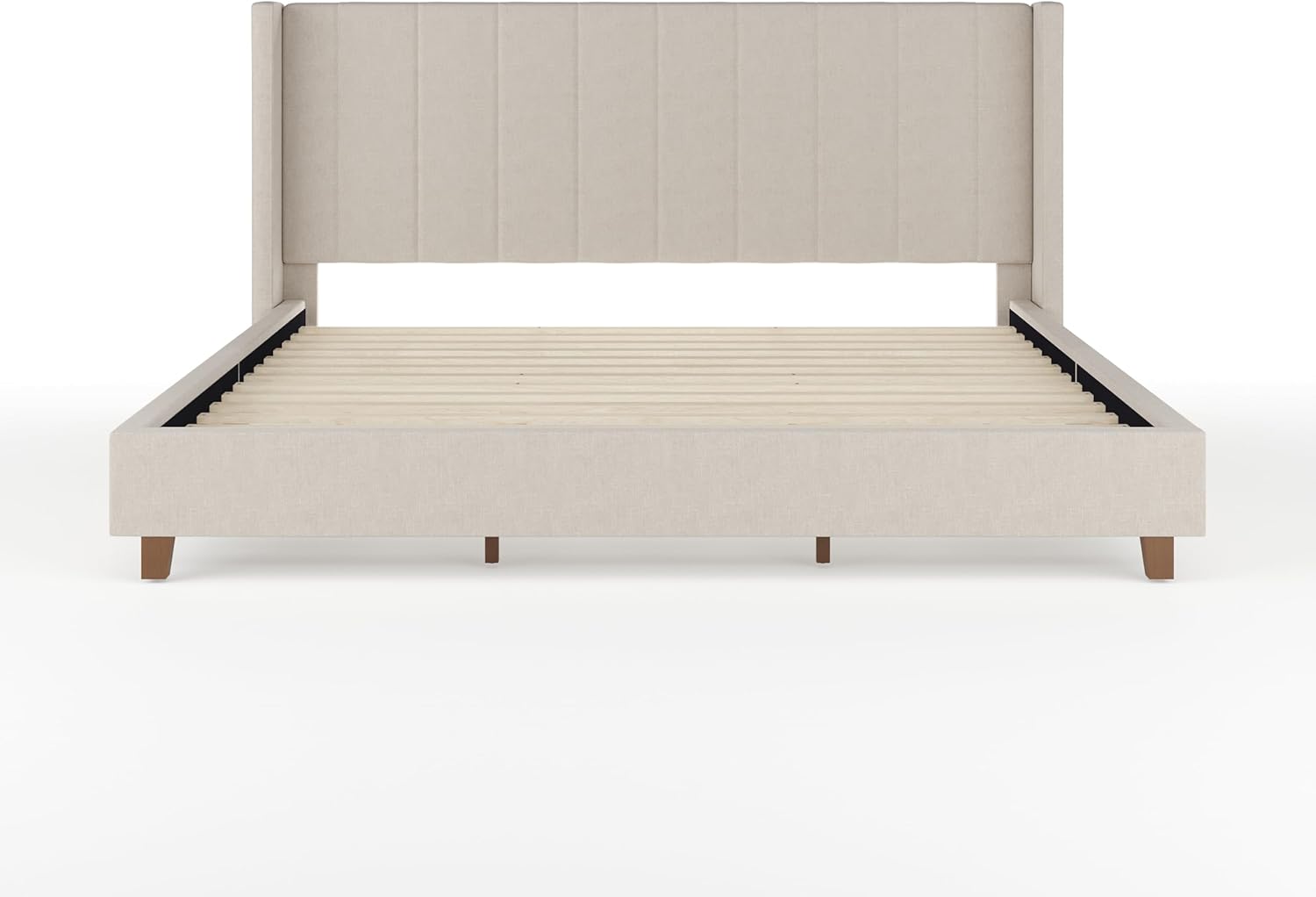 | Item Type Name | Kay Upholstered Platform Bed with Channel Stitched Wingback Headboard and Cushioned Siderails, Wood Slat Foundation, No Box Spring Needed |