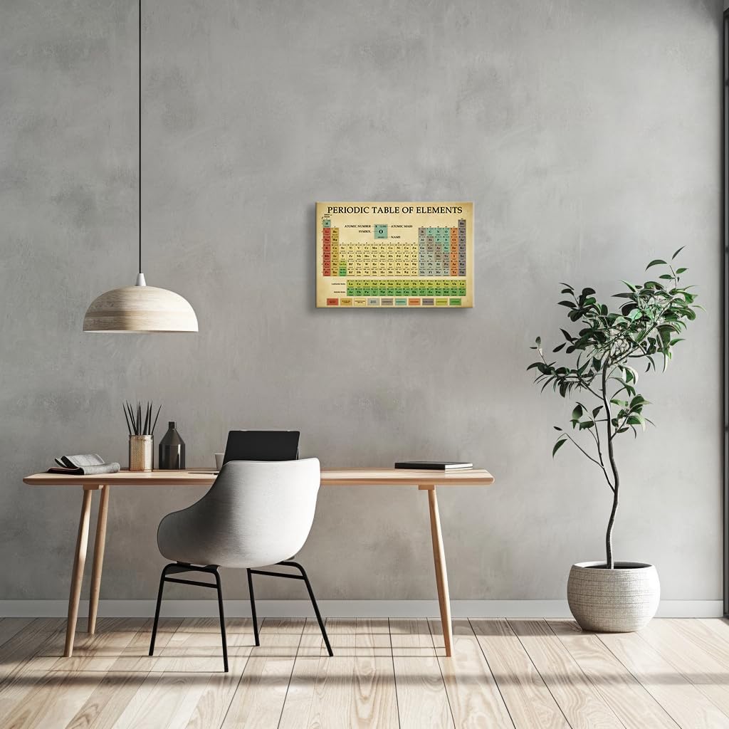 Periodic Table Poster Educational Wall Art Knowledge Poster Retro Canvas Framed Prints Periodic Table Of Elements Poster Decorations for Classroom