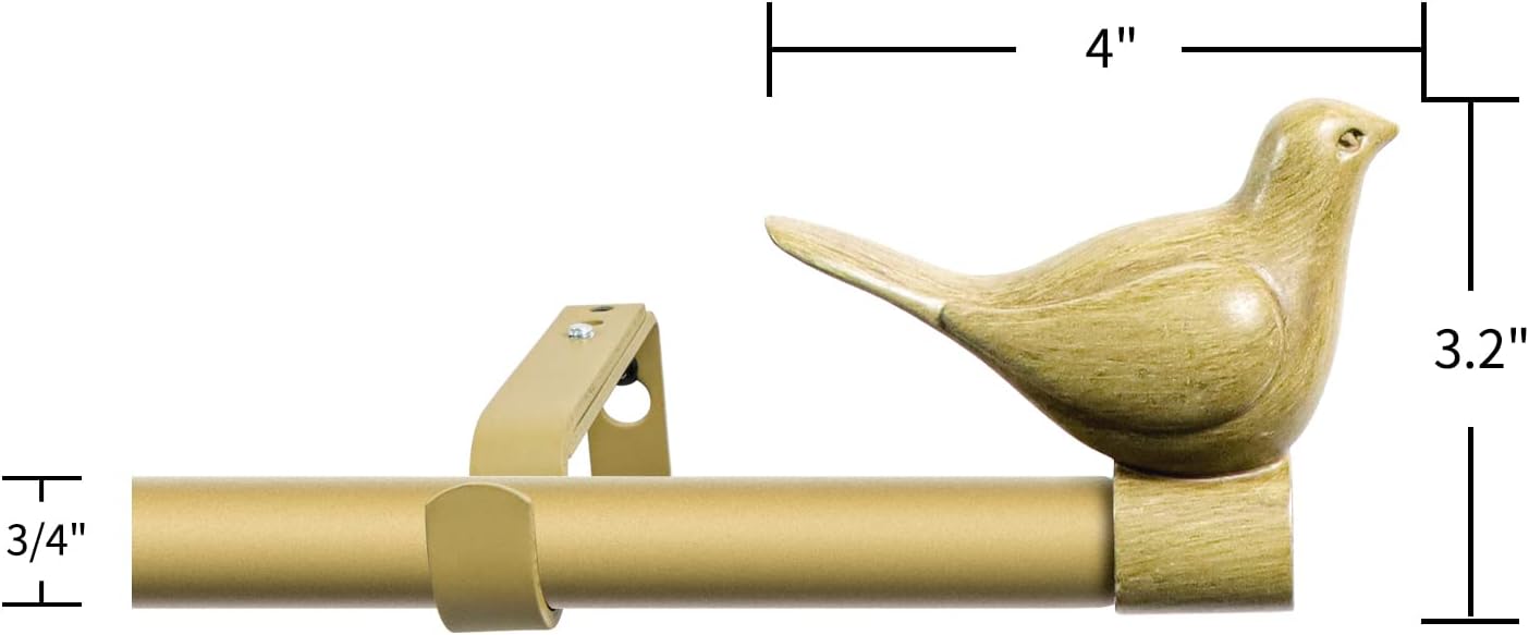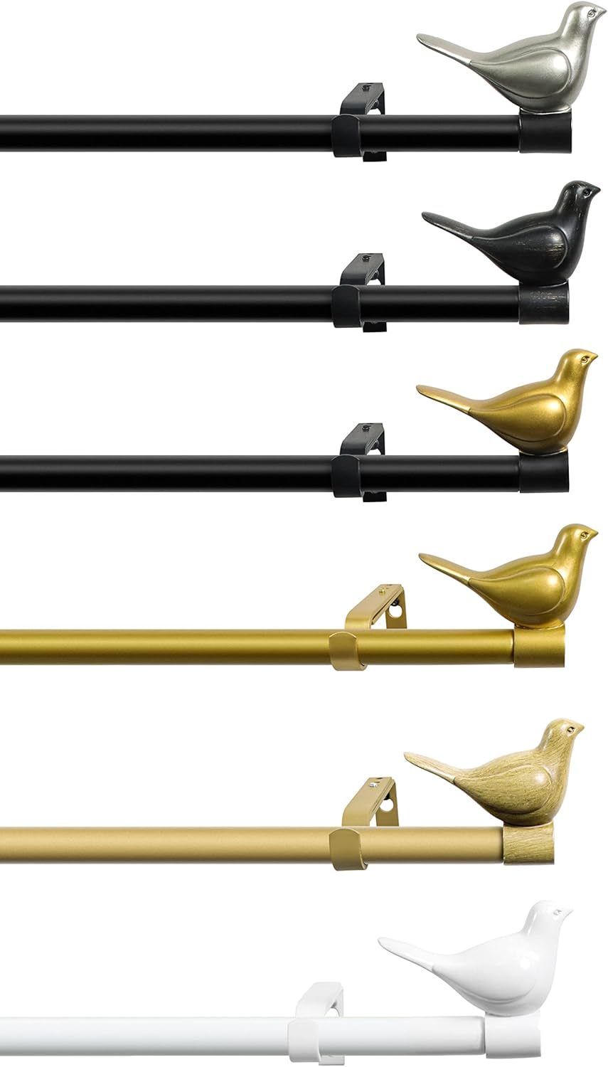 STURDY AND DURABLE: Meriville bird finials are made from high quality and durable poly resin. All finials finishes are hand-painted with stunning details. Rod are made of metal so you know they will last. COMPLETE WINDOW ROD SET: Includes 3/4" rods, finials, brackets and mounting hardware. EXTENDABLE: Designed to fit a range of window sizes. Come in three sizes: 28" - 48", 48" - 84" and 84" - 120". Two adjustable brackets included in 28"-48" rod set; three adjustable brackets included in 48"-84" and 84"-120" rod sets. Projection from wall adjusts from 4" to 5.5”. MORE FINISH CHOICES: Available in 6 finishes: Gold, Glossy White, Burnt Gold, Cottage, Pewter with Black Rod and Gold with Black Rod.