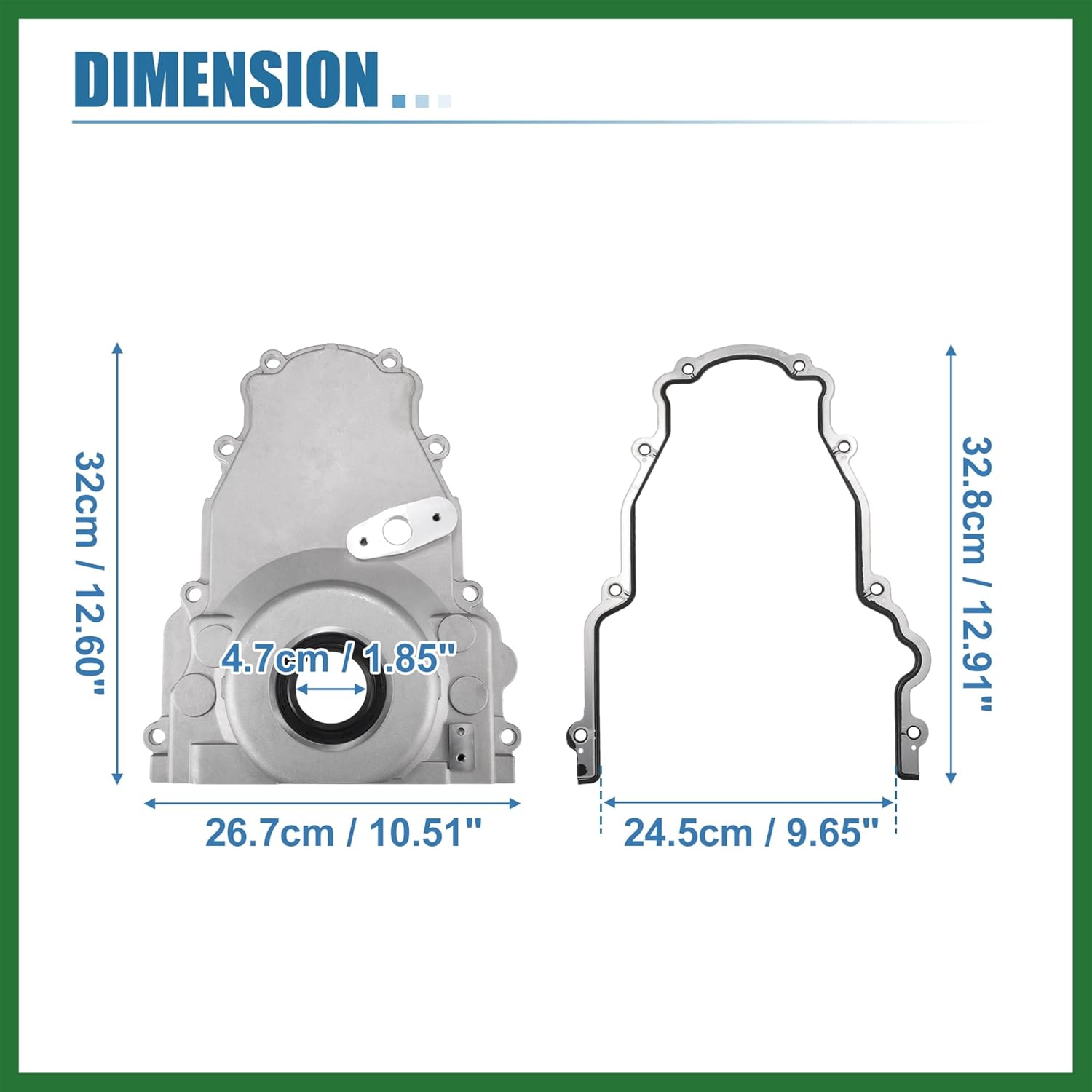 Features:Good components and design provide long lasting, reliable side support.Direct replac the old or broken one, no need to make any changes.This is vehicle specific product, please make sure your car model before ordering.Please allow 3-5mm differences due to manual measurement.This is a non-OEM product, accessory only! Specification:Condition: NewColor: Silver ToneMaterial: MetalTiming Cover Size: 32 x 26.7cm / 12.60" x 10.51"Gasket Size: 32.8 x 24.5cm / 12.91" x 9.65"Thread Size 1: M8x1.25Thread Size 2: M6x1.0OE Number:12600326/12561243Fitment:for LS2 LS3 Gen 4 LSx 4.8L 5.3L 6.0L 6.2L Enginesfor Buick Rainier 2004for Cadillac CTS 2004-2005for Cadillac Escalade 2002-2006for Cadillac Escalade ESV 2003-2006for Cadillac Escalade EXT 2002-2006for Chevy Avalanche 1500 2500 2002-2006for Chevy Camaro 1998-2002for Chevy Corvette 1997-2004for Chevy Express 1500 2500 3500 2003-2007for Chevy Silverado 1500 1999-2007for Chevy Silverado 1500 Classic 2007for Chevy Silverado 1500 HD 2001-2006for Chevy Silverado 1500 HD Classic 2007for Chevy Silverado 2500 1999-2004for Chevy Silverado 2500 HD 2001-2007for Chevy Silverado 2500 HD Classic 2007for Chevy Silverado 3500 2001-2006for Chevy Silverado 3500 Classic 2007for Chevy Silverado 3500 HD 2007for Chevy SSR 2003-2004for Chevy Suburban 1500 2500 2000-2006for Chevy Tahoe 2000-2006for Chevy Trailblazer EXT 2003-2004for GMC Envoy XL 2003-2004for GMC Envoy XUV 2004for GMC Savana 1500 2500 3500 2003-2007for GMC Sierra 1500 1999-2007for GMC Sierra 1500 Classic 2007for GMC Sierra 1500 HD 2001-2006Package Included:1 Set Timing Cover with Gasket