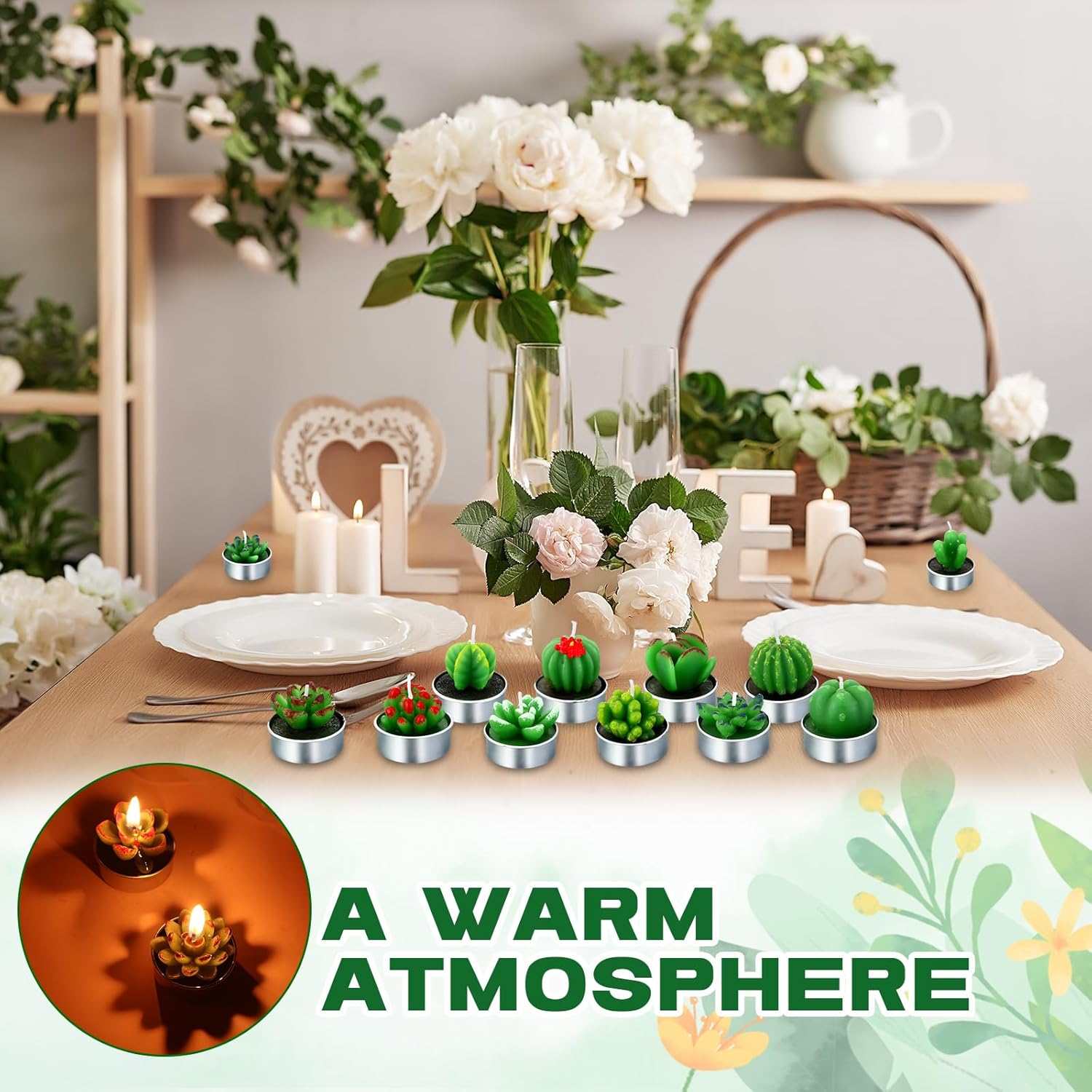 Features: Size details: Each of the candle party favors bulk has a proper size. The candle measures approx. 1.97 x 1.97 x 1.97 inches, the diameter of the sticker is about 1.5 inches, and the tag measures 1.97 x 0.79 inches, compact and delicate. Enjoy yourselves: When you feel hard at work, tired of life, stressed at studying, you can use our decorative tea lights to relieve the pressure and relax your mood. In this way, you will love life again and be full of motivation to meet the difficulties. Specifications: Main material: paraffin, ceramic, paper and plasticColor: as pictures shownSize of candle: approx. 1.97 x 1.97 x 1.97 inches/ 5 x 5 x 5 cmPackage includes: 48 x Cactus succulent candle favors setsNotes: Manual measurement, please allow slight errors on size. The color may exist a slight difference due to different screen displays. Words printed on our products are only for decorating, not as trademarks, and our trademark is MTLEE.