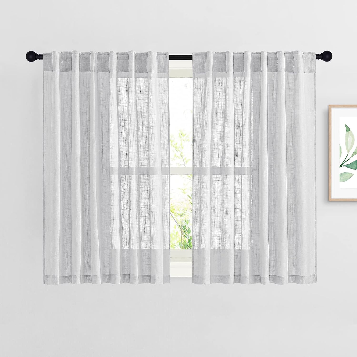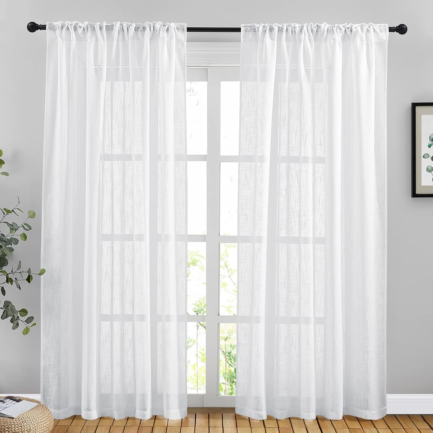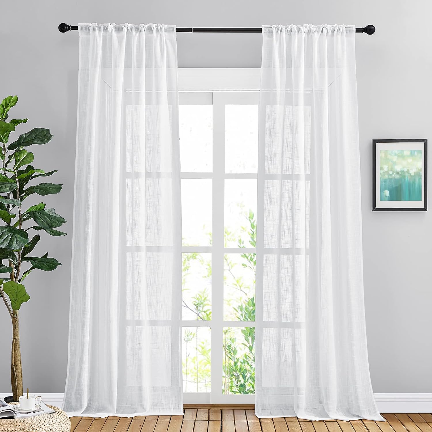Do you want a curtain that can refresh your home decor? Then NICETOWN natural open linen weave flax sheer curtain will satisfy your need.NICE CHOICE:Made by hand and made of high-quality fabric makes the curtains are long-lasting. More size choice for you selects to match your window. Each package includes 2 panels of linen-textured curtains. Elegant colors can match any color of blackout curtains well. Each panel has a 2" inner diam rod pocket & back tab which can fit the most size rods on the market.The curtain material is soft and environmentally friendly, making a quite natural look to your windows and rooms. PERFORMANCE:Linen textured fabric is much thicker than normal sheer, which helps you get rid of the curious sights from outside and protect your privacy better. So you can enjoy a happy time with your family.Reduce part of strong sunlight and UV rays to protect your furniture and artworks. Formaldehyde-free, they can be used in the nursery, children's bedroom, living room, study room, and other places where you want privacy but still with light filter.WASHING TIPS:1. This Linen Look sheer French Door Curtain is easy to care for by Machine Wash in cold water and Tumble Dry.2. Quick ironing or steam cleaning if it is necessary. Do not bleach.NOTE: Due to different screen displays, the color of the actual item may vary slightly from the above images.