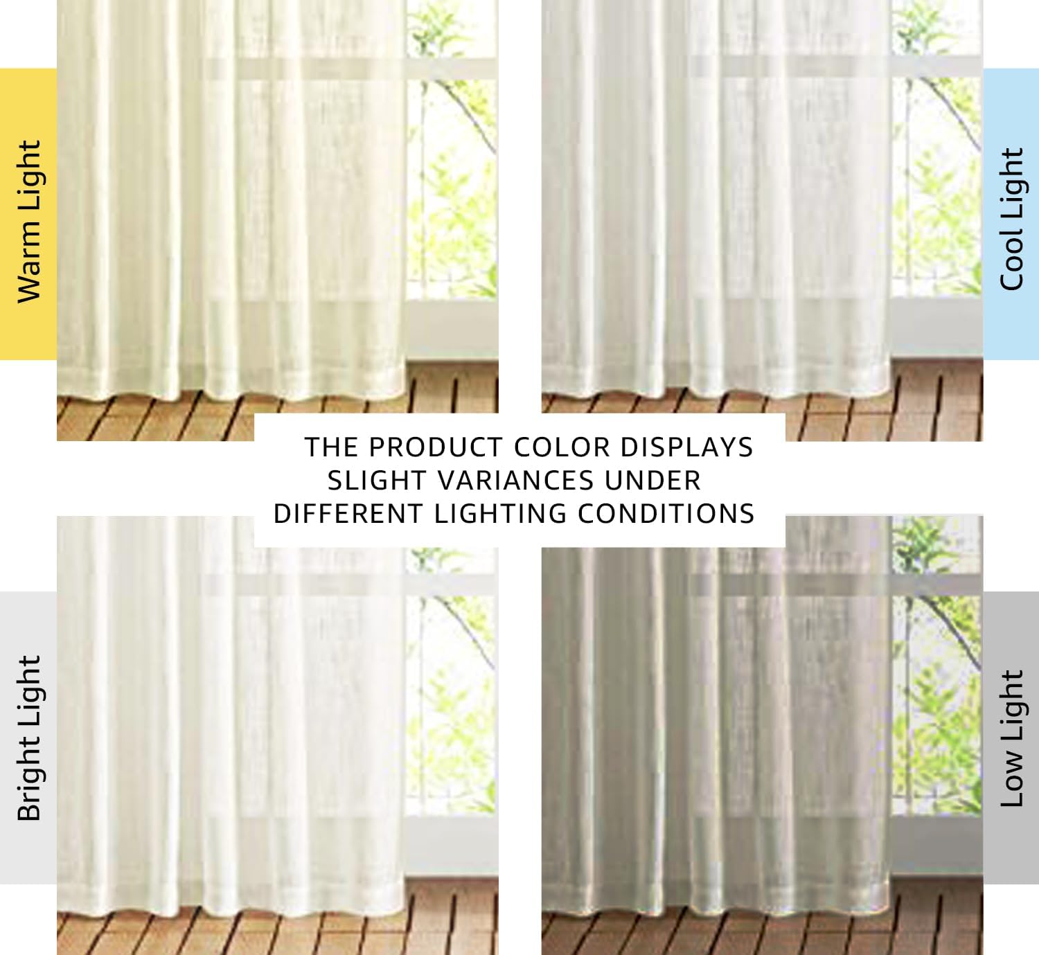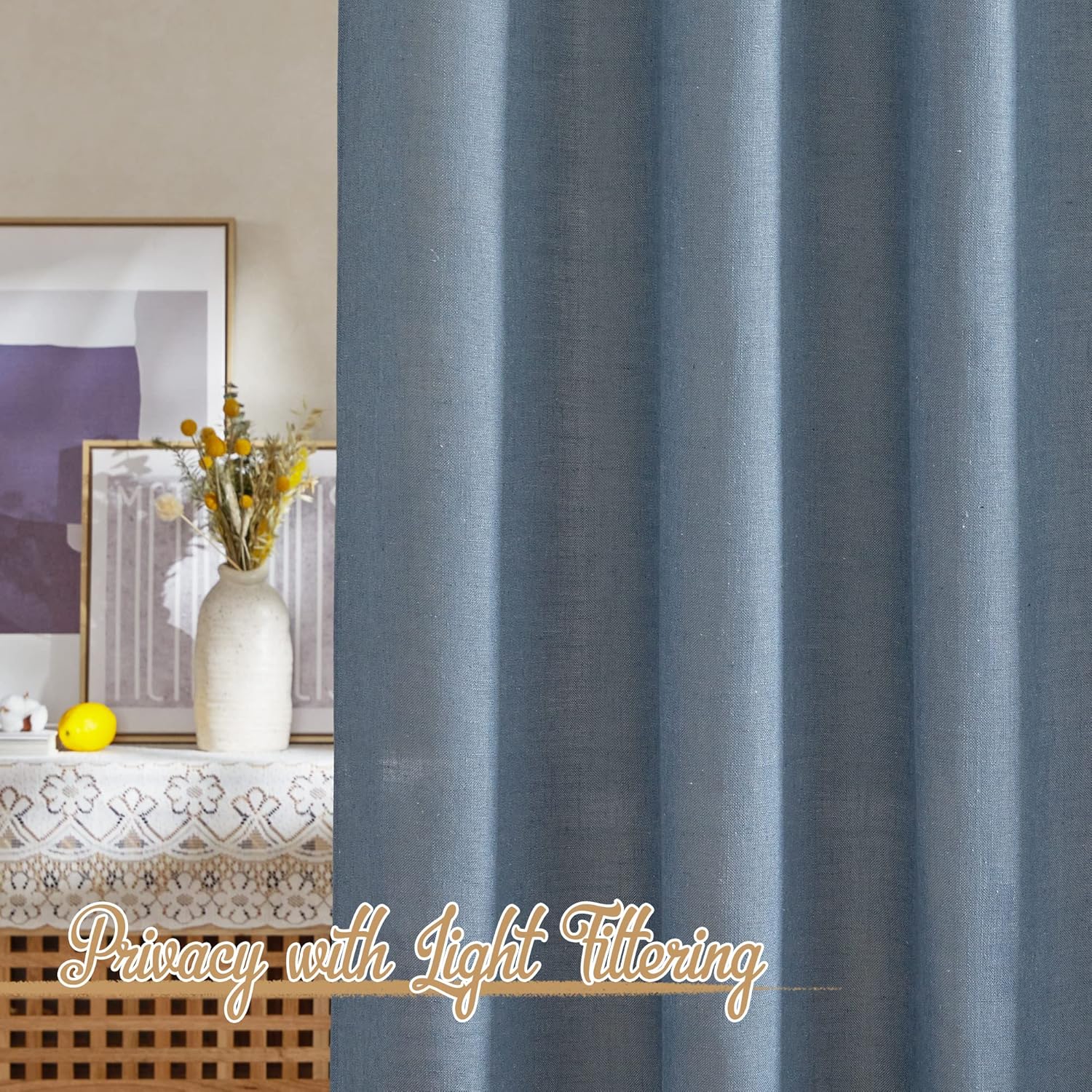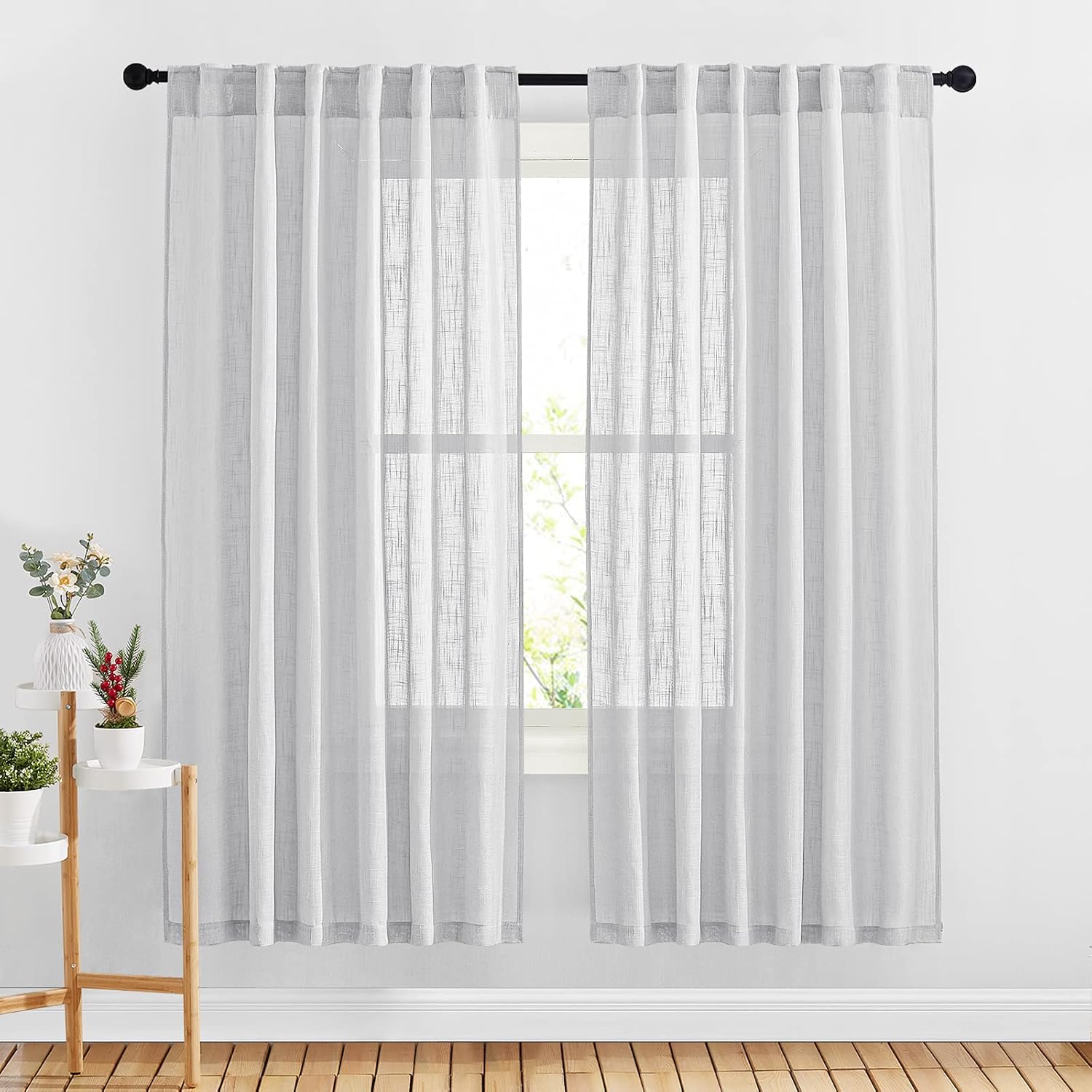 Do you want a curtain that can refresh your home decor? Then NICETOWN natural open linen weave flax sheer curtain will satisfy your need.NICE CHOICE:Made by hand and made of high-quality fabric makes the curtains are long-lasting. More size choice for you selects to match your window. Each package includes 2 panels of linen-textured curtains. Elegant colors can match any color of blackout curtains well. Each panel has a 2" inner diam rod pocket & back tab which can fit the most size rods on the market.The curtain material is soft and environmentally friendly, making a quite natural look to your windows and rooms. PERFORMANCE:Linen textured fabric is much thicker than normal sheer, which helps you get rid of the curious sights from outside and protect your privacy better. So you can enjoy a happy time with your family.Reduce part of strong sunlight and UV rays to protect your furniture and artworks. Formaldehyde-free, they can be used in the nursery, children's bedroom, living room, study room, and other places where you want privacy but still with light filter.WASHING TIPS:1. This Linen Look sheer French Door Curtain is easy to care for by Machine Wash in cold water and Tumble Dry.2. Quick ironing or steam cleaning if it is necessary. Do not bleach.NOTE: Due to different screen displays, the color of the actual item may vary slightly from the above images.