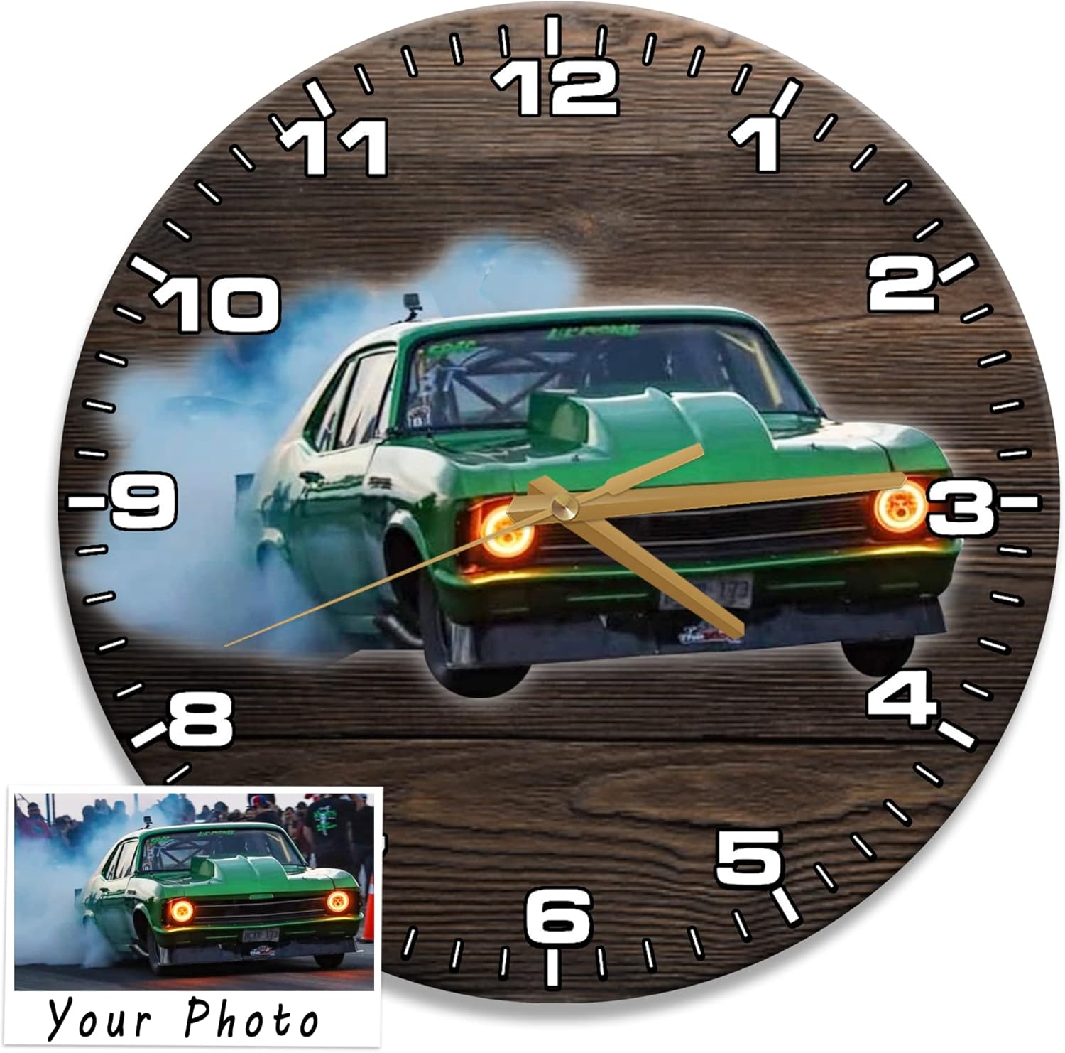 | Additional Features | Personalized Photo/Picture Dragster Wooden Wall Clock |