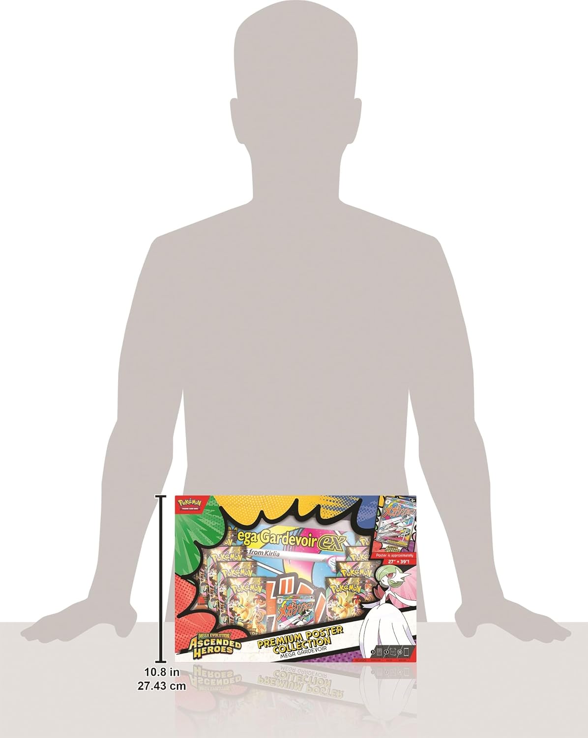 Decorate Your Space with Mega Lucario ex or Mega Gardevoir ex! With strong attacks and big HP, Mega Lucario ex and Mega Gardevoir ex break through boundaries in battle. Team up with one of these powerful Mega Evolution Pokémon ex as a full-art foil promo card, then find even more Pokémon inside a stack of 10 booster packs from Mega Evolution—Ascended Heroes. You’ll also get a large poster showing off Mega Lucario or Mega Gardevoir and other Pokémon featured in this special expansion.